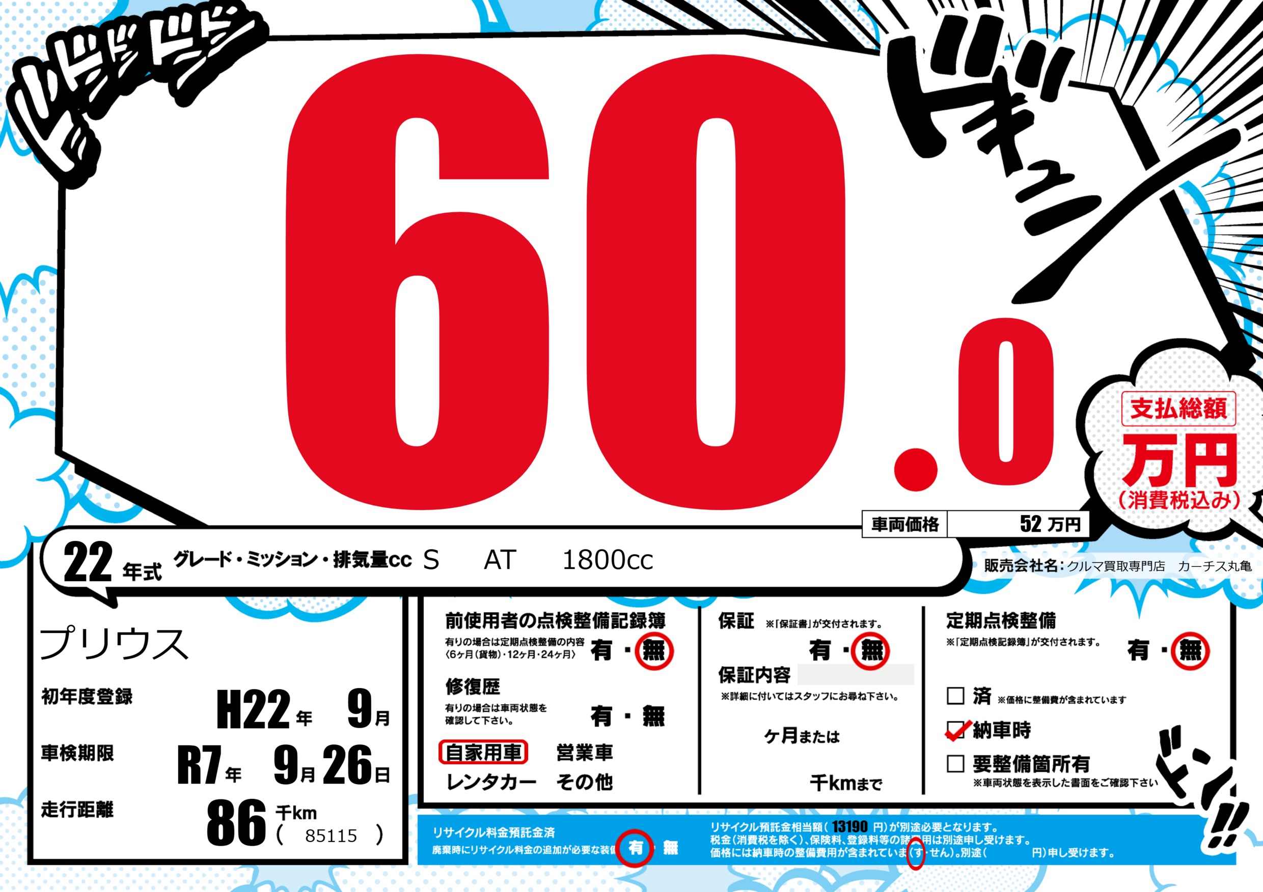 | 車検制限 | R7年 9月 26日 | ||