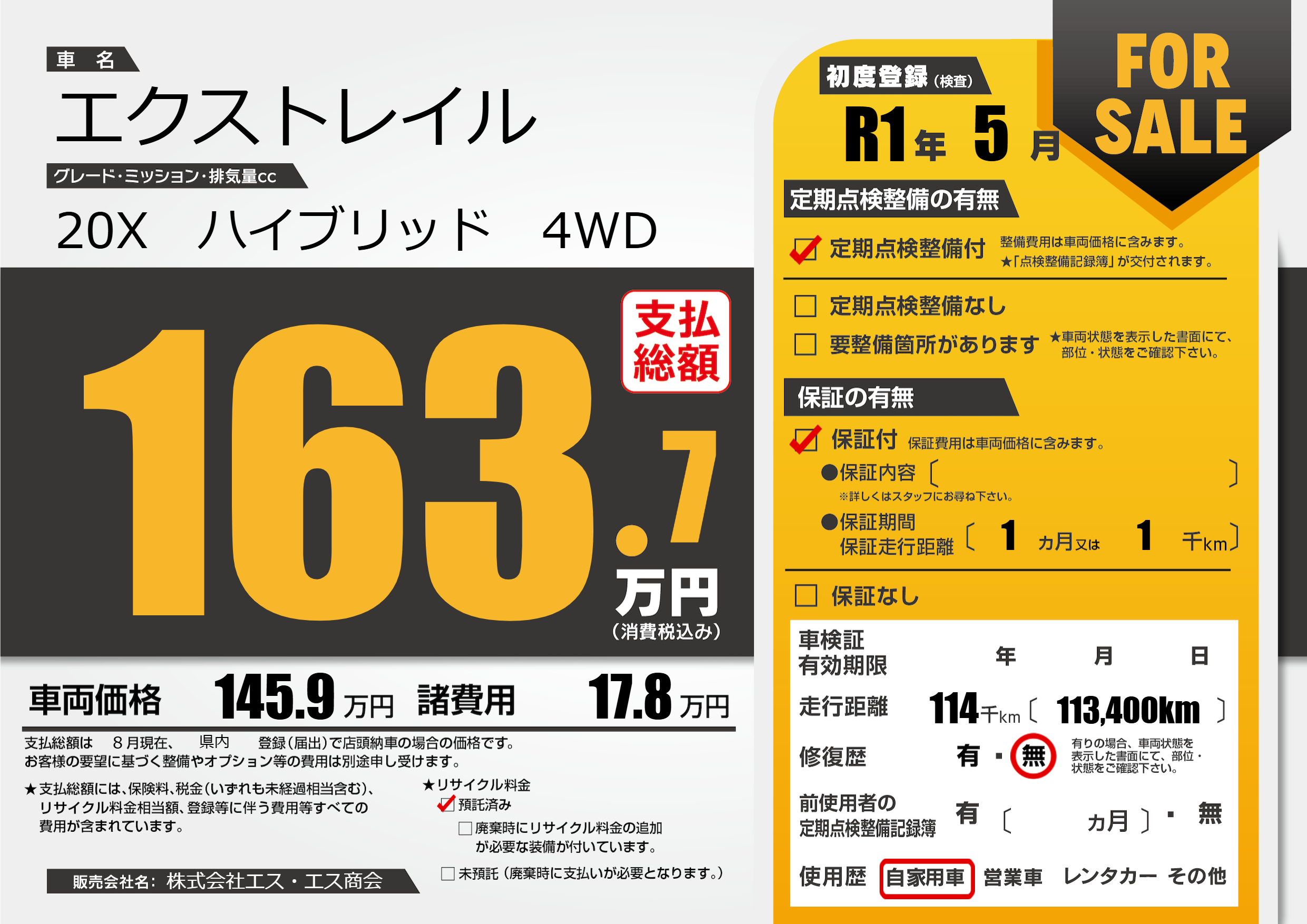 | 車名 | エクストレイル | グレード ミッション 排気量 |