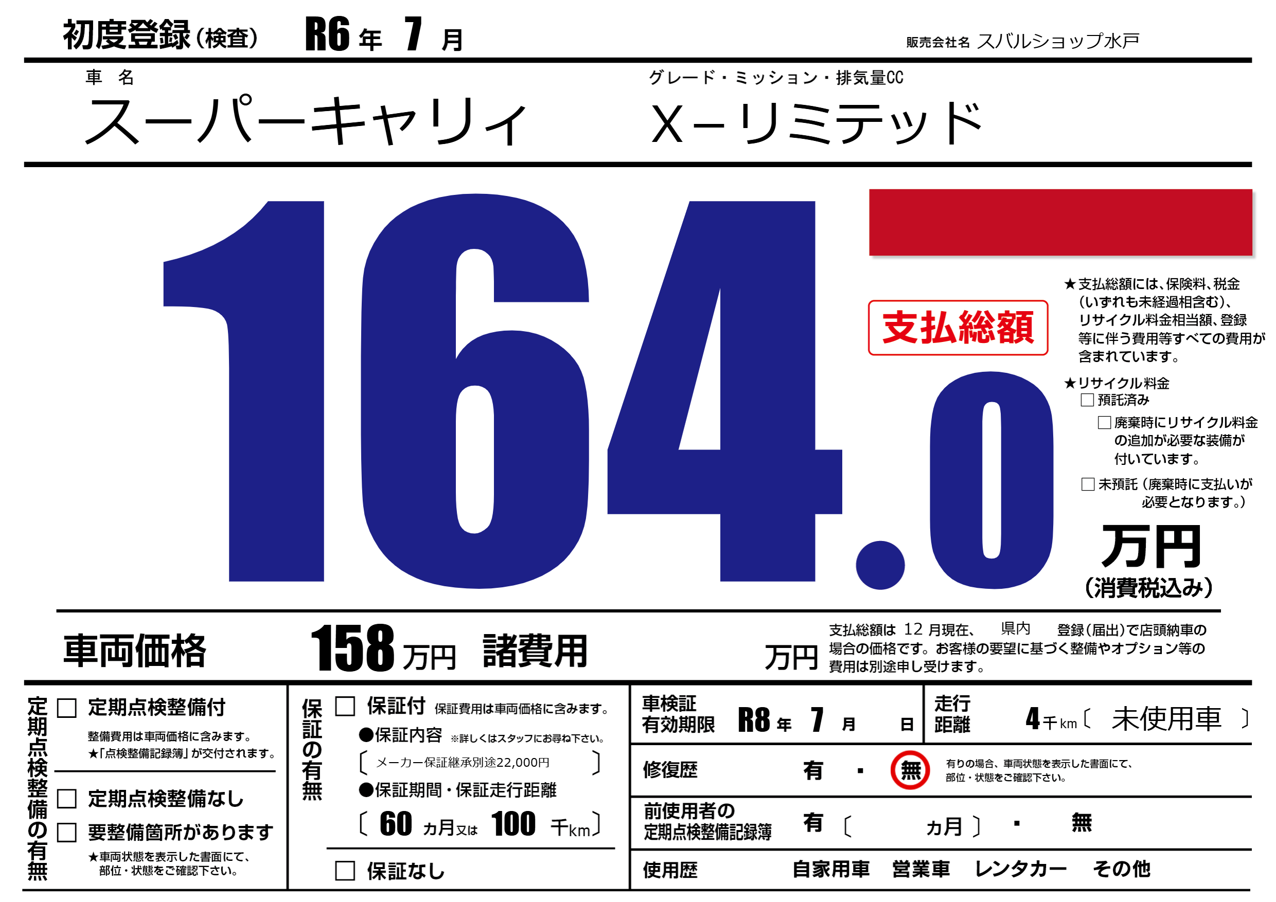 | 車名 | スーパーキャリィ | グレード ミッション 排気量 |