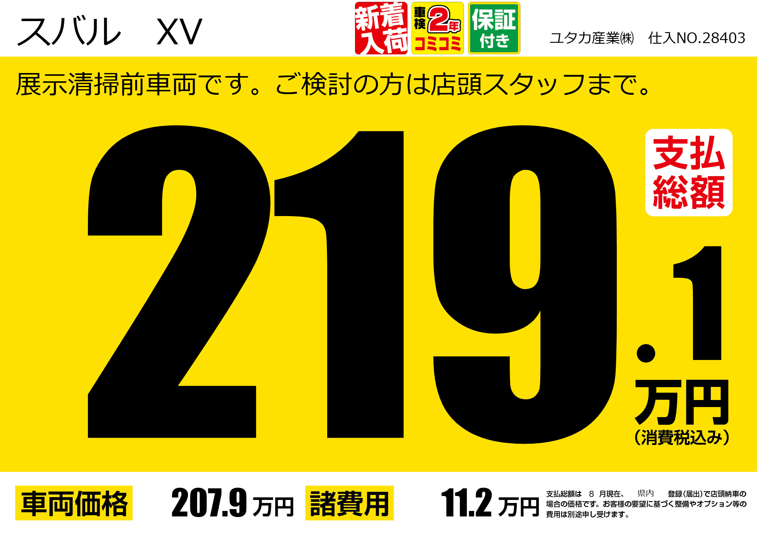 | 車名 | スバル XV | グレード ミッション 排気量 |