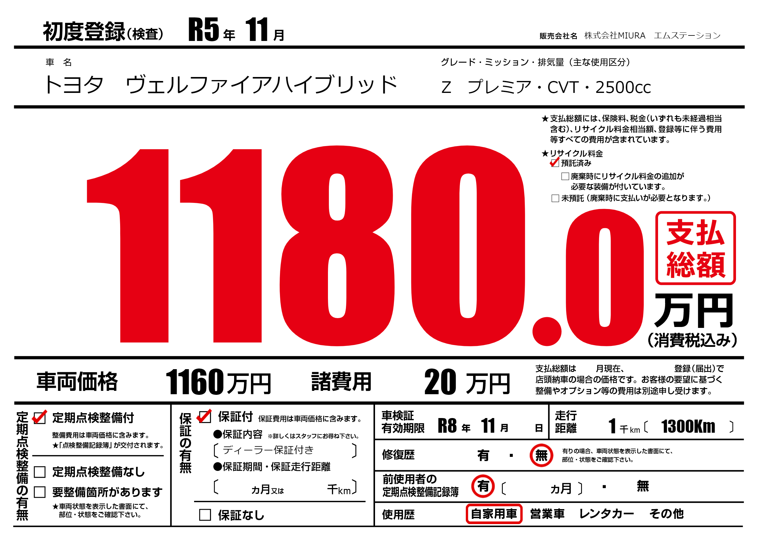 | 定期点検整備 | 定期点検整備あり | ||