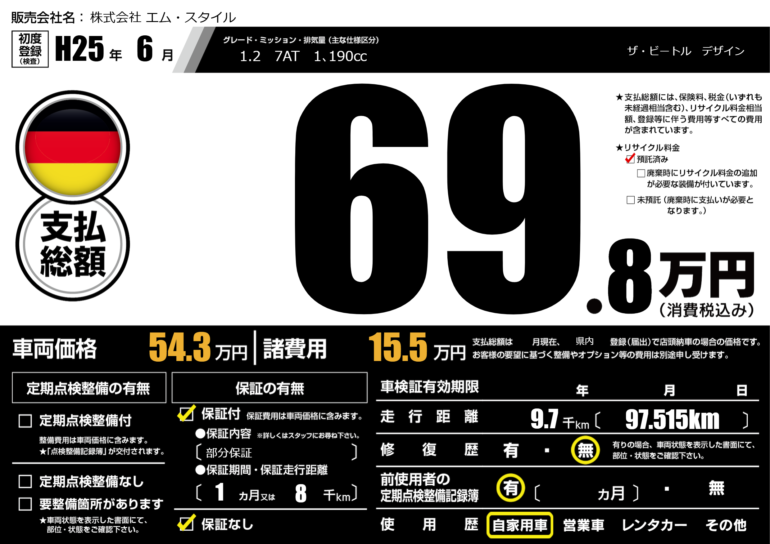 | 車名 | ザ・ビートル デザイン | グレード ミッション 排気量 |