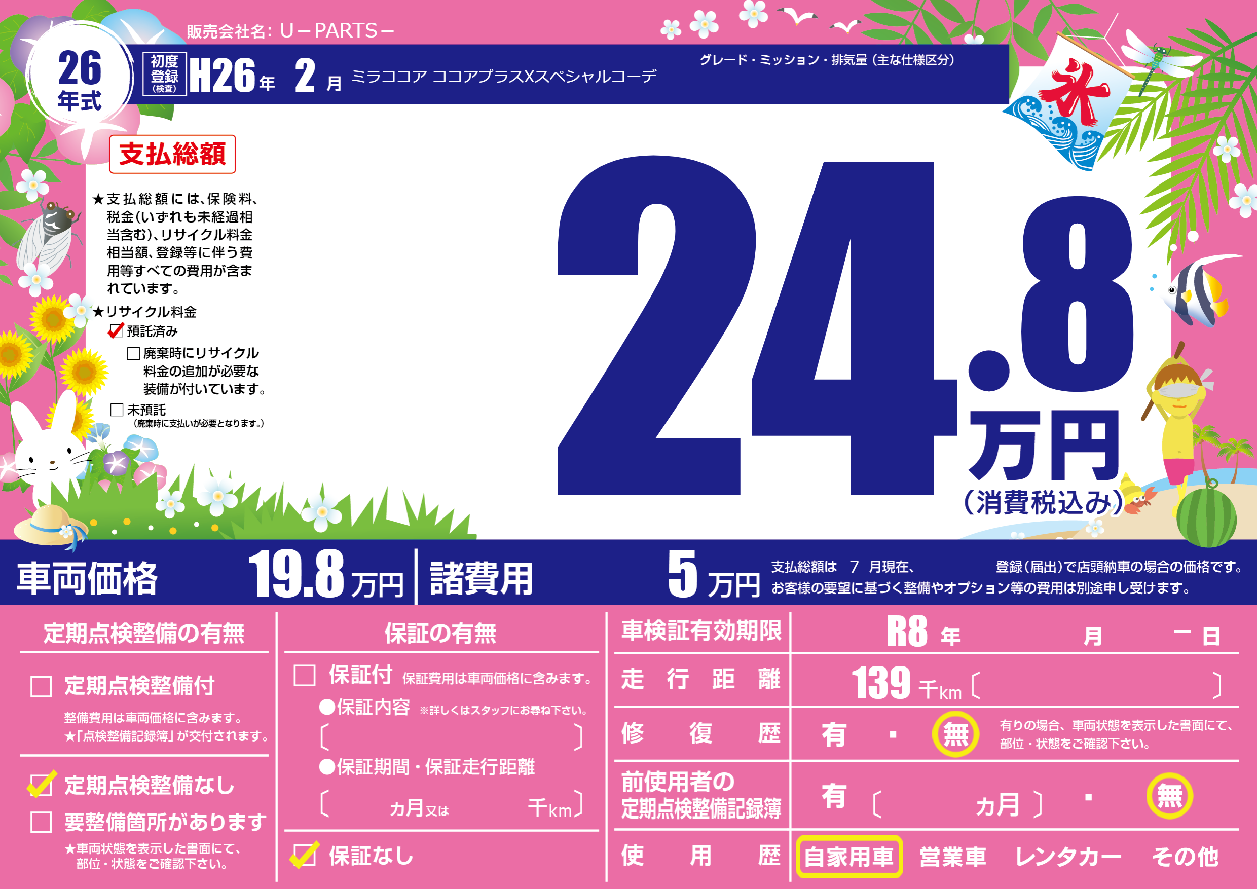 なし | 車検制限 | R8年---月ー月 |
