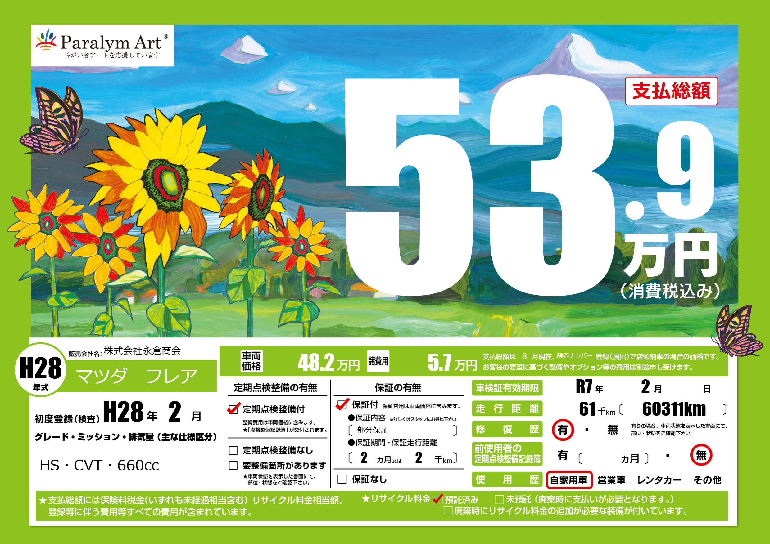| 車名 | マツダ フレア | グレード ミッション 排気量 |