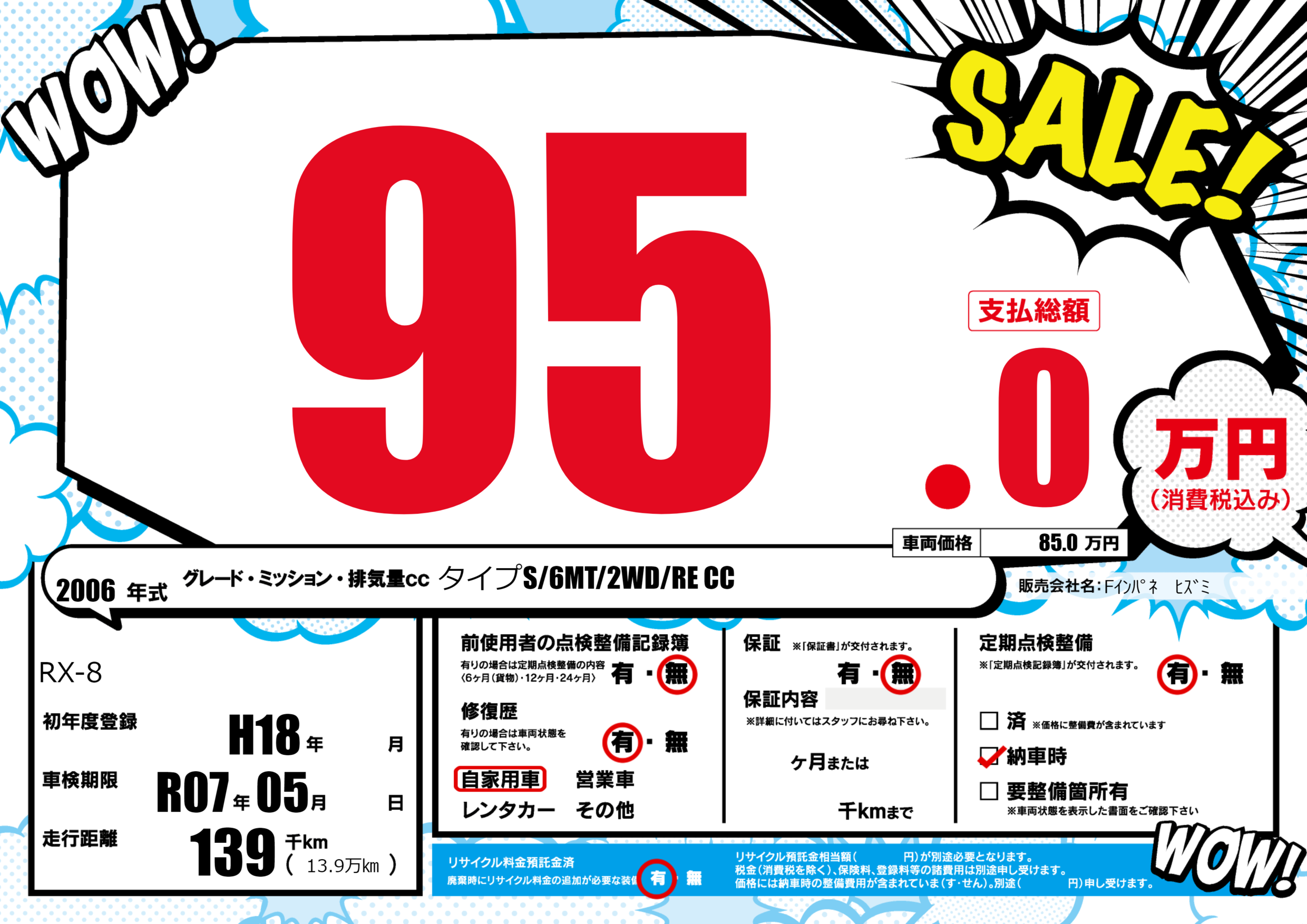 | 車名 | RX-8 | グレード ミッション 排気量 |
