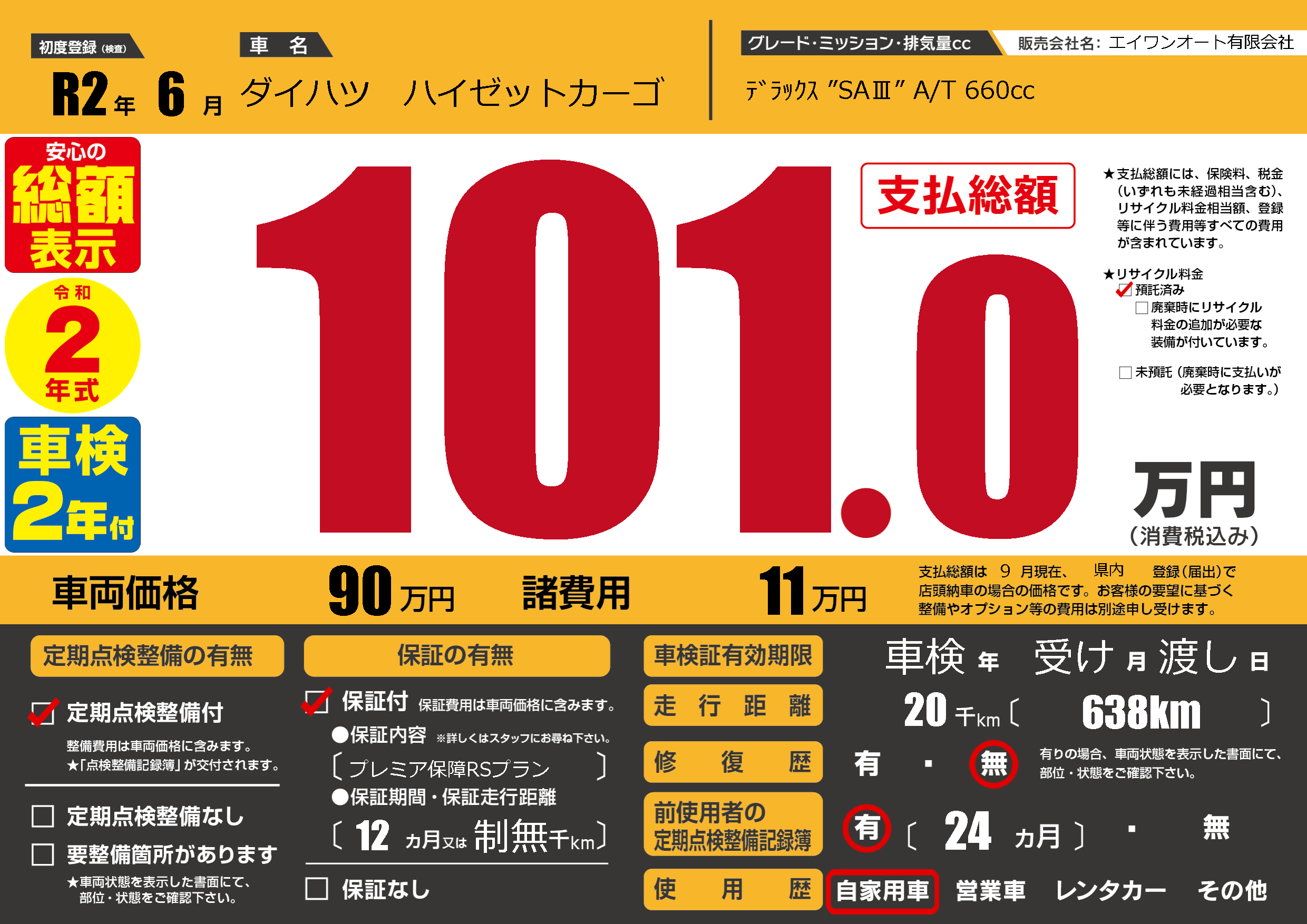 | 走行キロ | 2万km | 初年度登録 | R2年6月 |