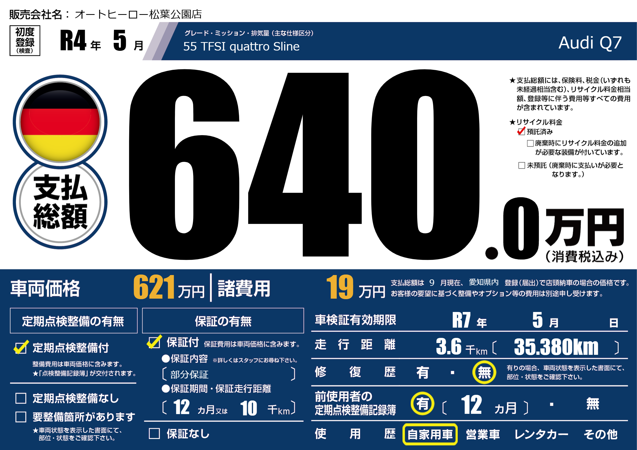 | 車名 | Audi Q7 | グレード ミッション 排気量 |