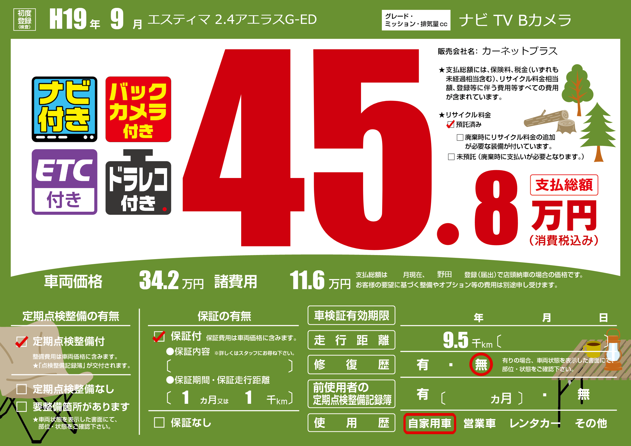 | 走行キロ | 0.9万km | 初年度登録 | H19年9月 |