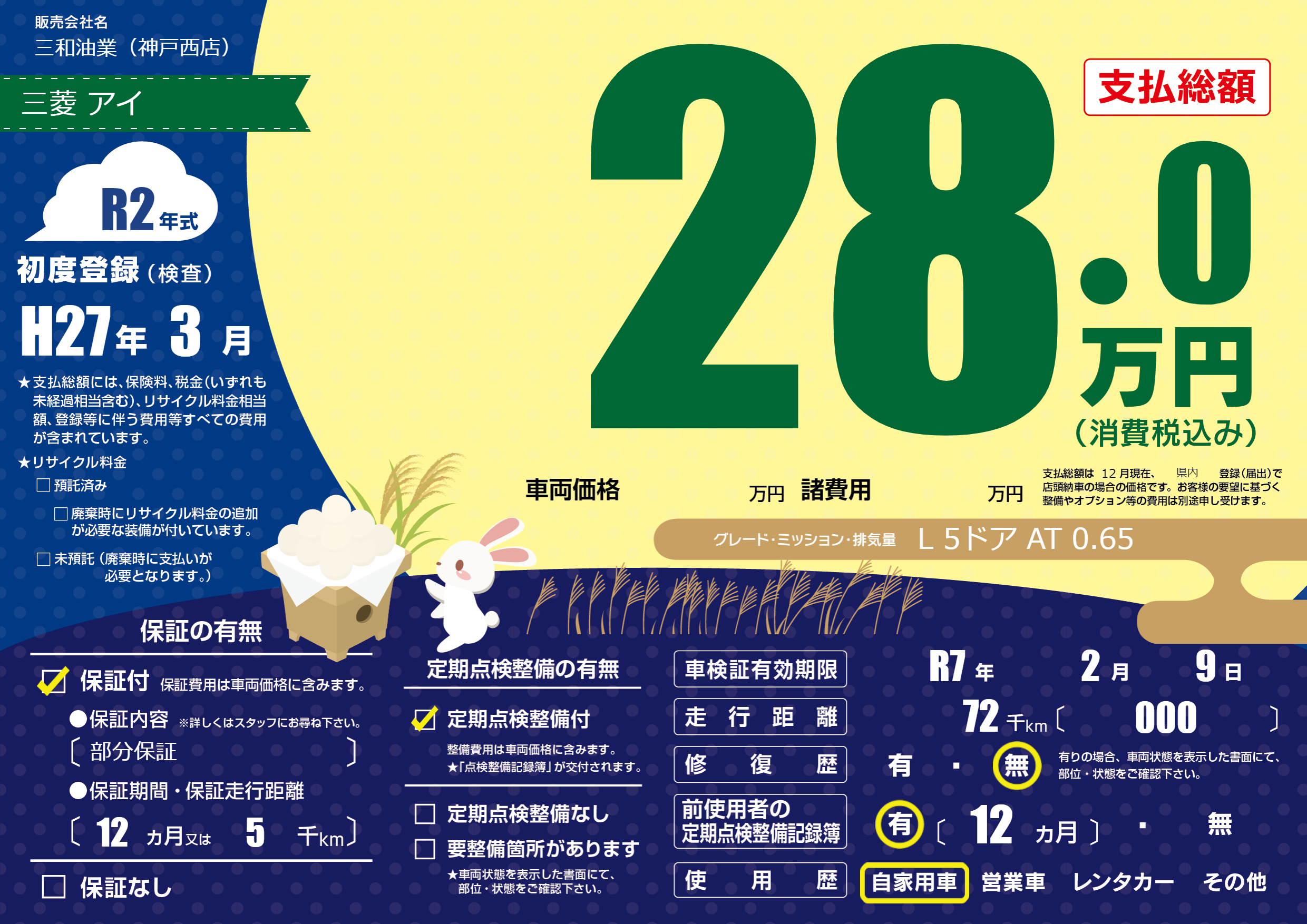 | 車名 | 三菱 アイ | グレード ミッション 排気量 |