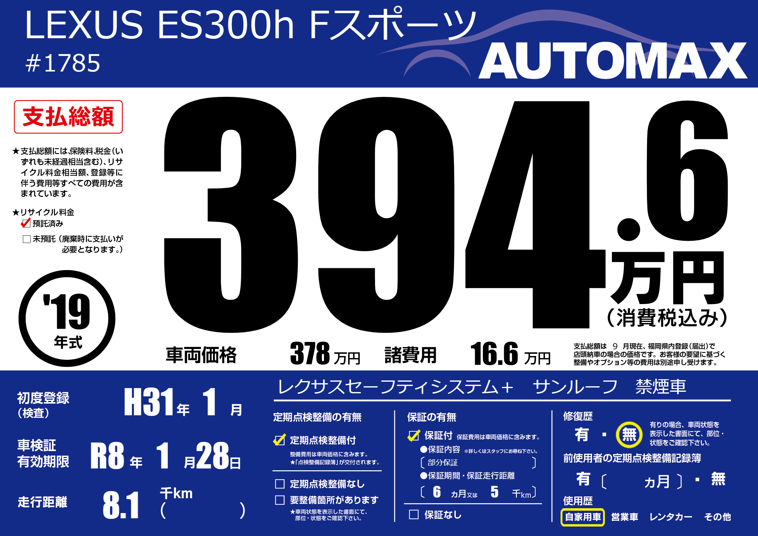 なし | 車検制限 | R8年1月28月 |