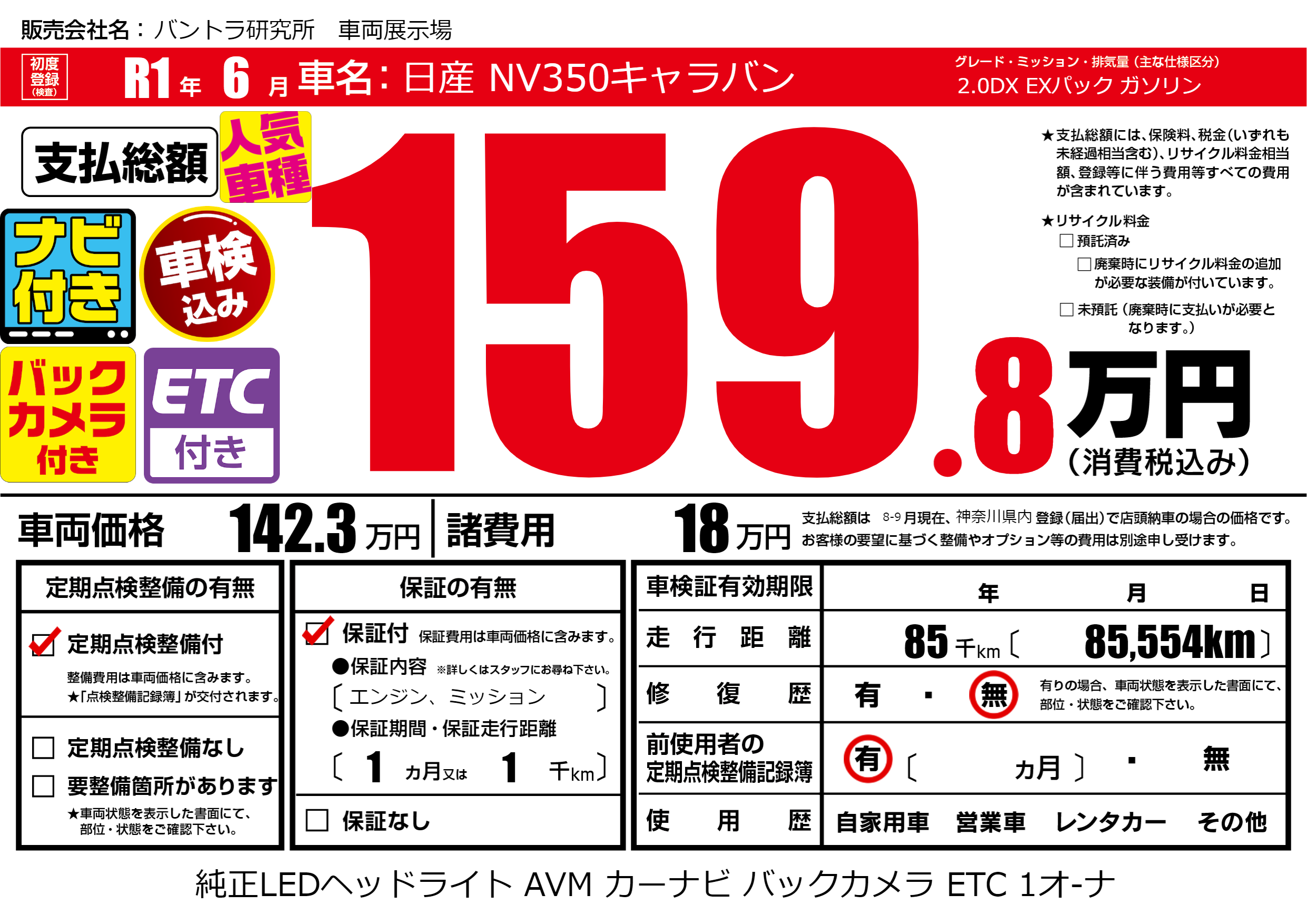 | 車名 | 日産 NV350キャラバン | グレード ミッション 排気量 |