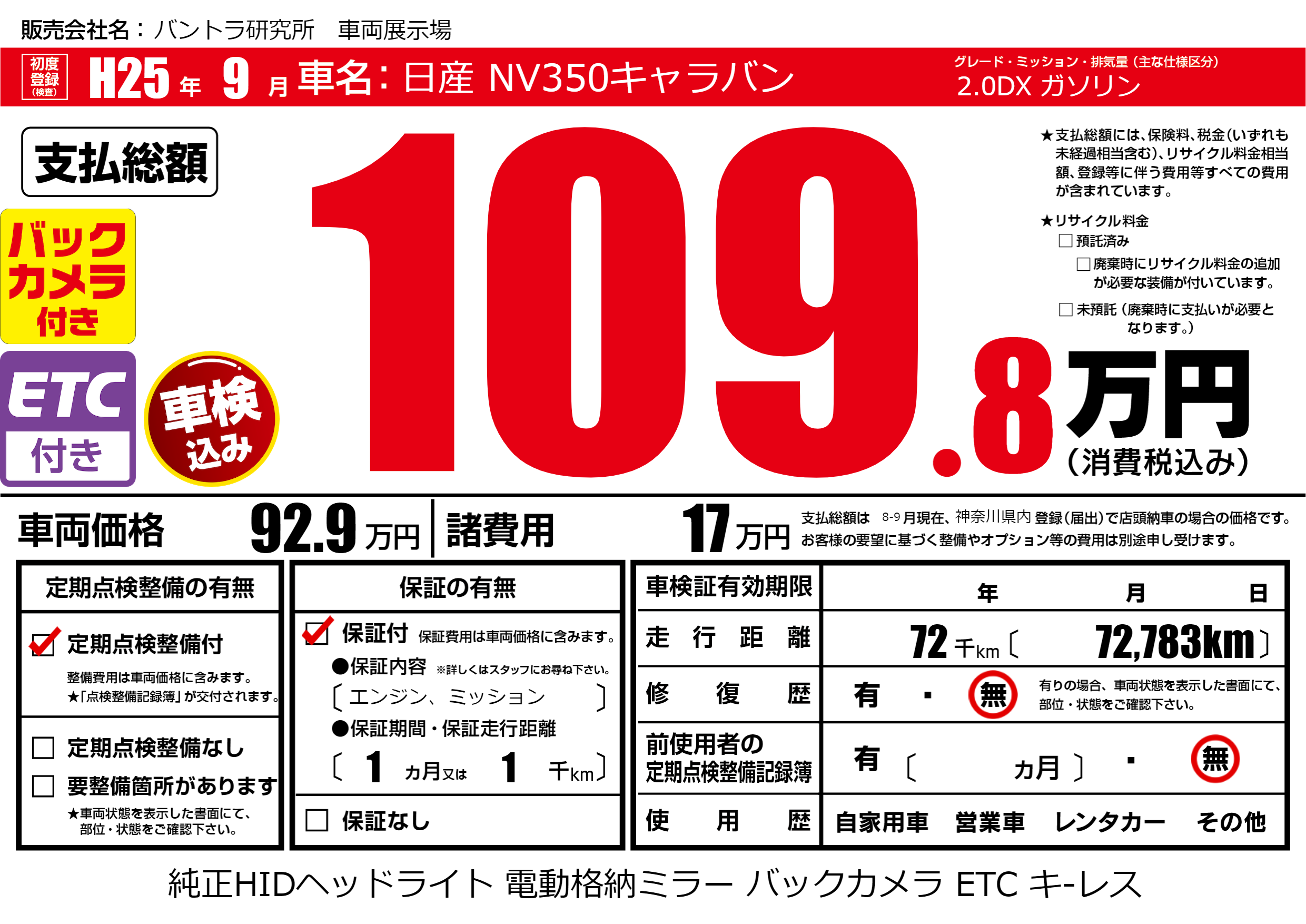 | 定期点検整備 | 定期点検整備あり | ||