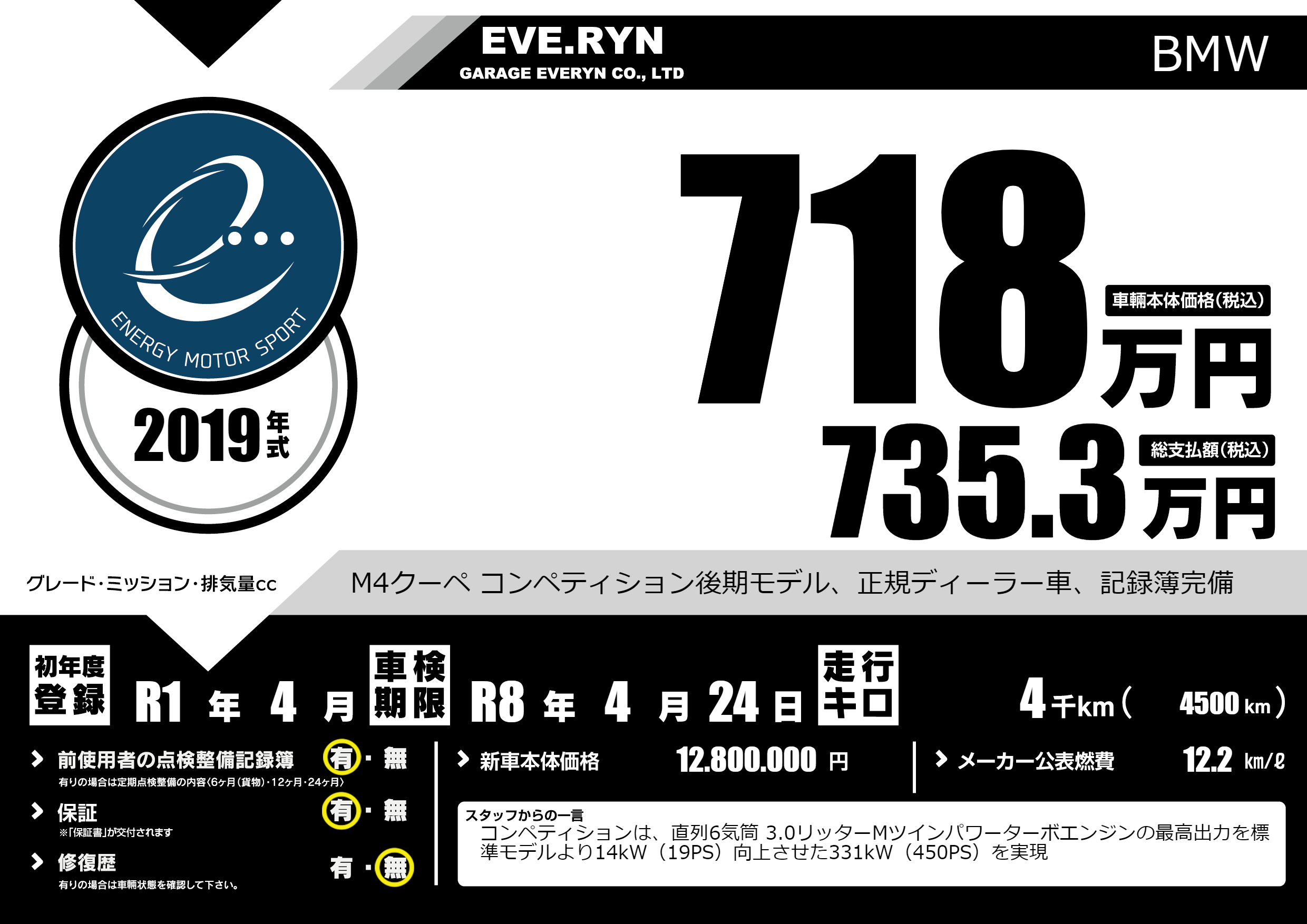 M4クーペ コンペティション後期モデル、正規ディーラー車、記録簿完備 |