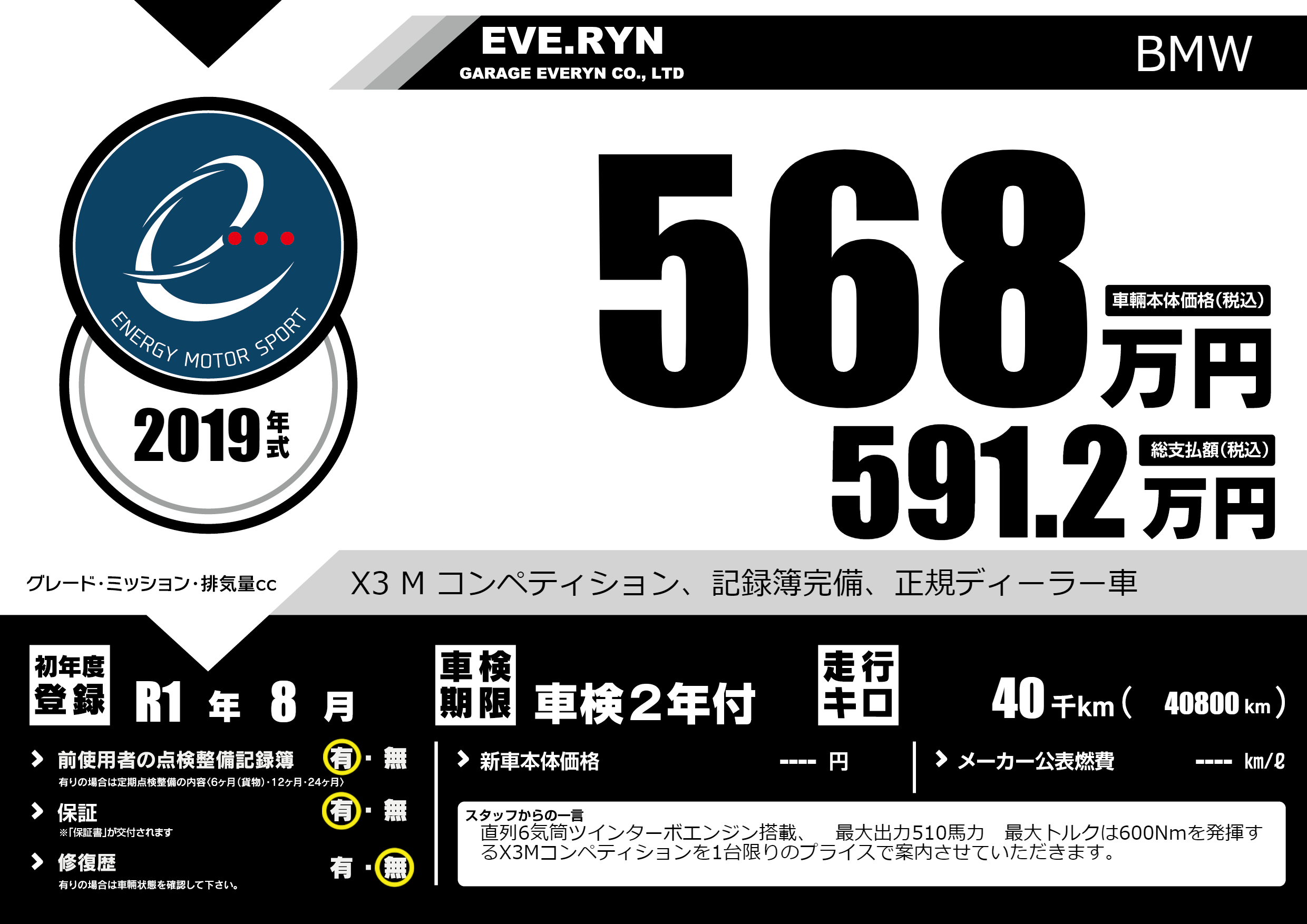 X3 M コンペティション、記録簿完備、正規ディーラー車 |