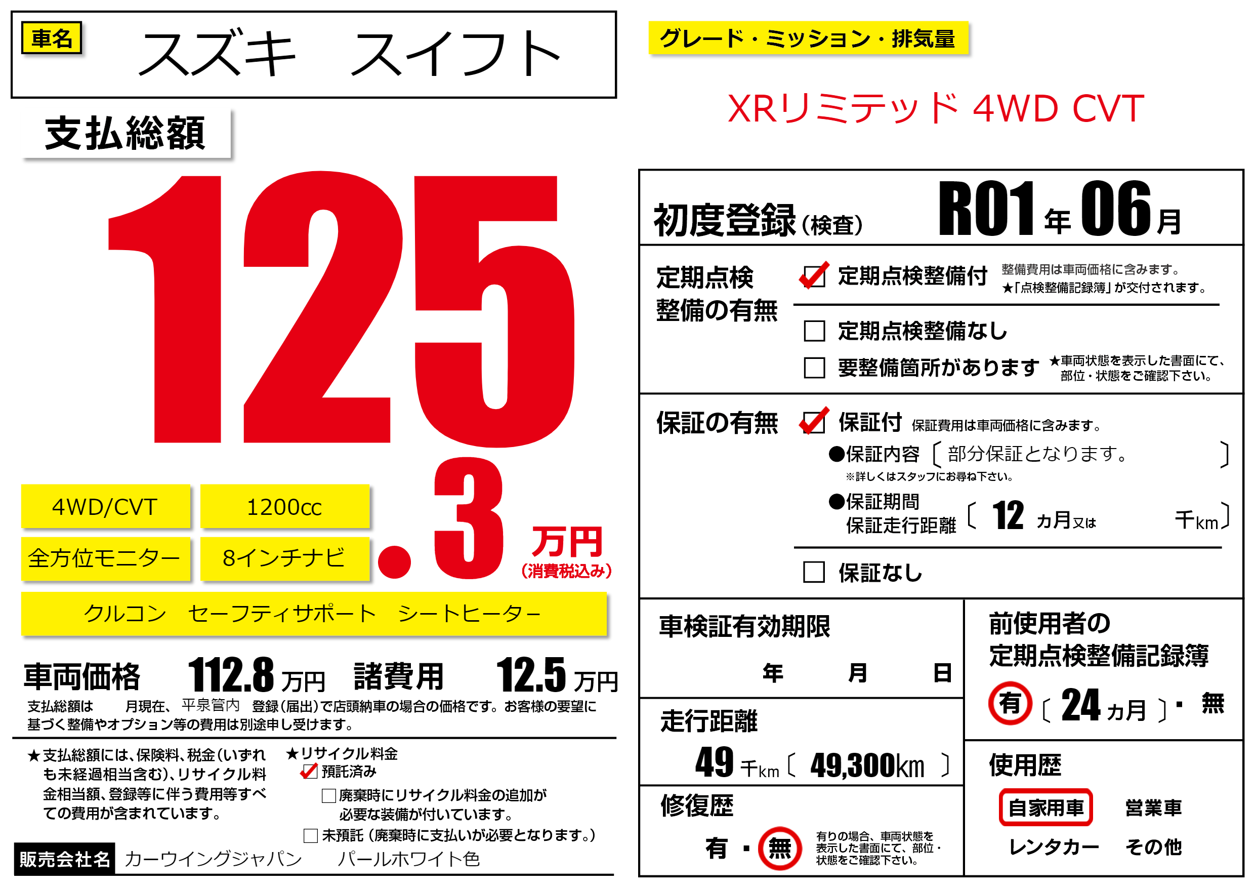 | 走行キロ | 4.9万km | 初年度登録 | R01年06月 |