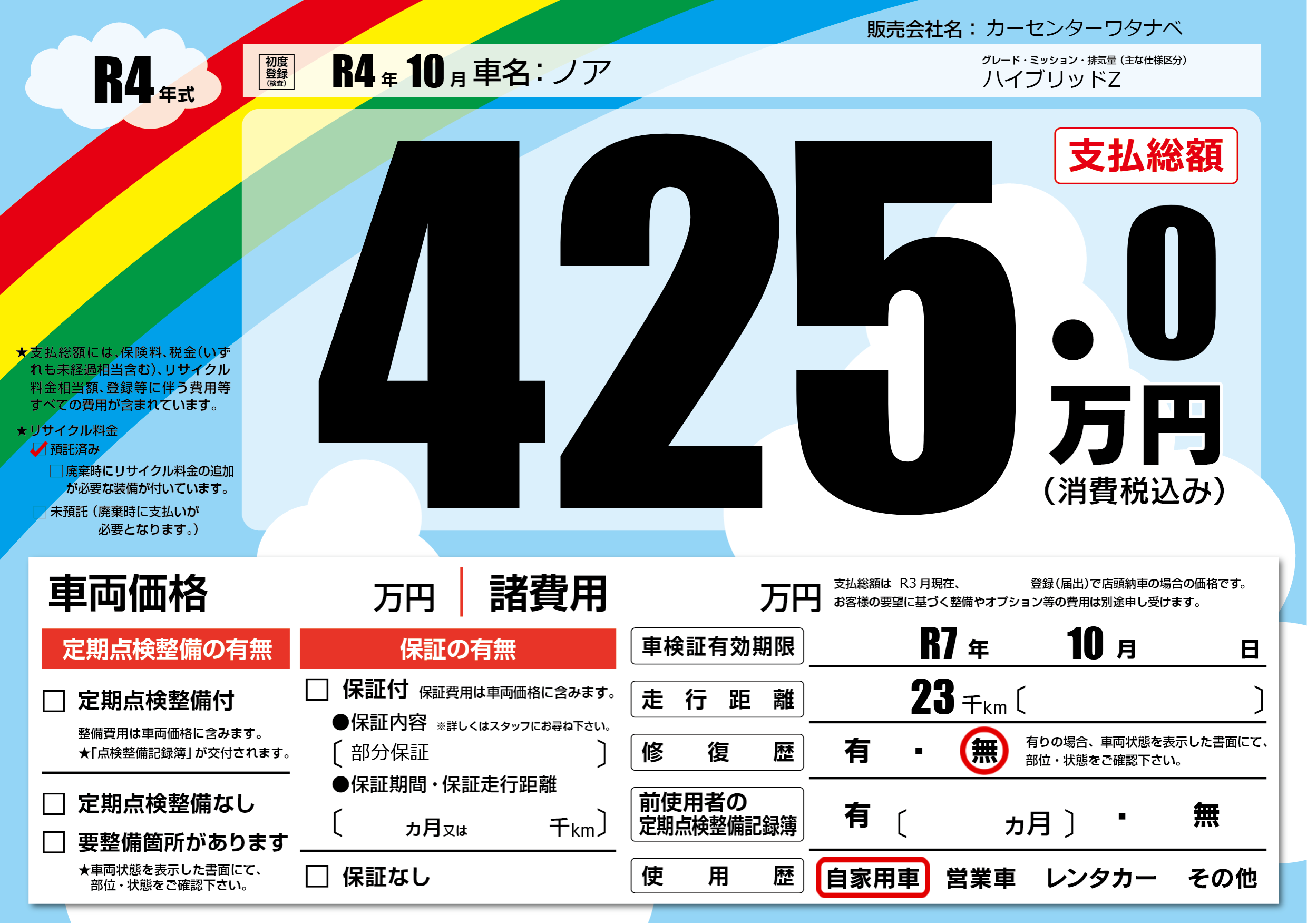 | 車検制限 | R7年 10月 - 日 | ||