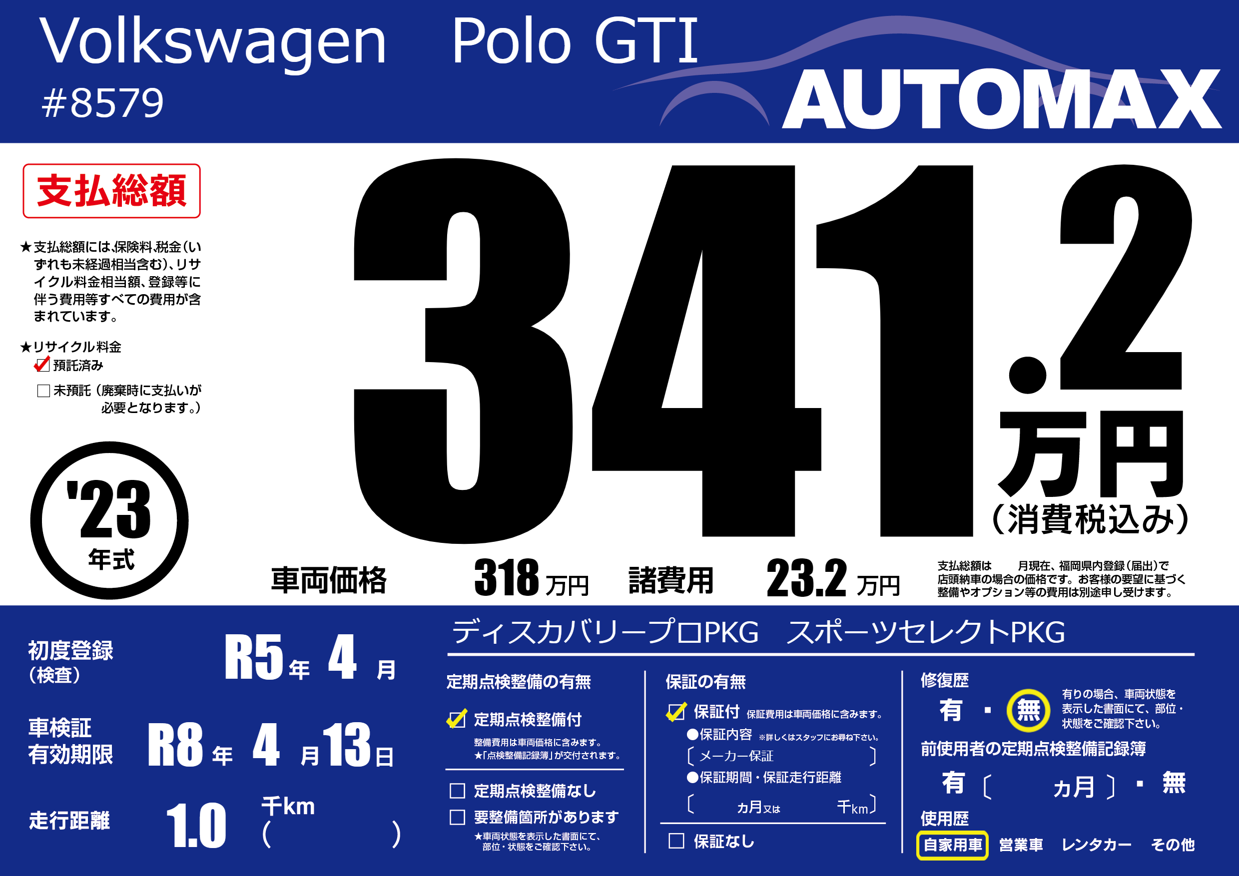 | 車名 | Volkswagen Polo GTI | グレード ミッション 排気量 |