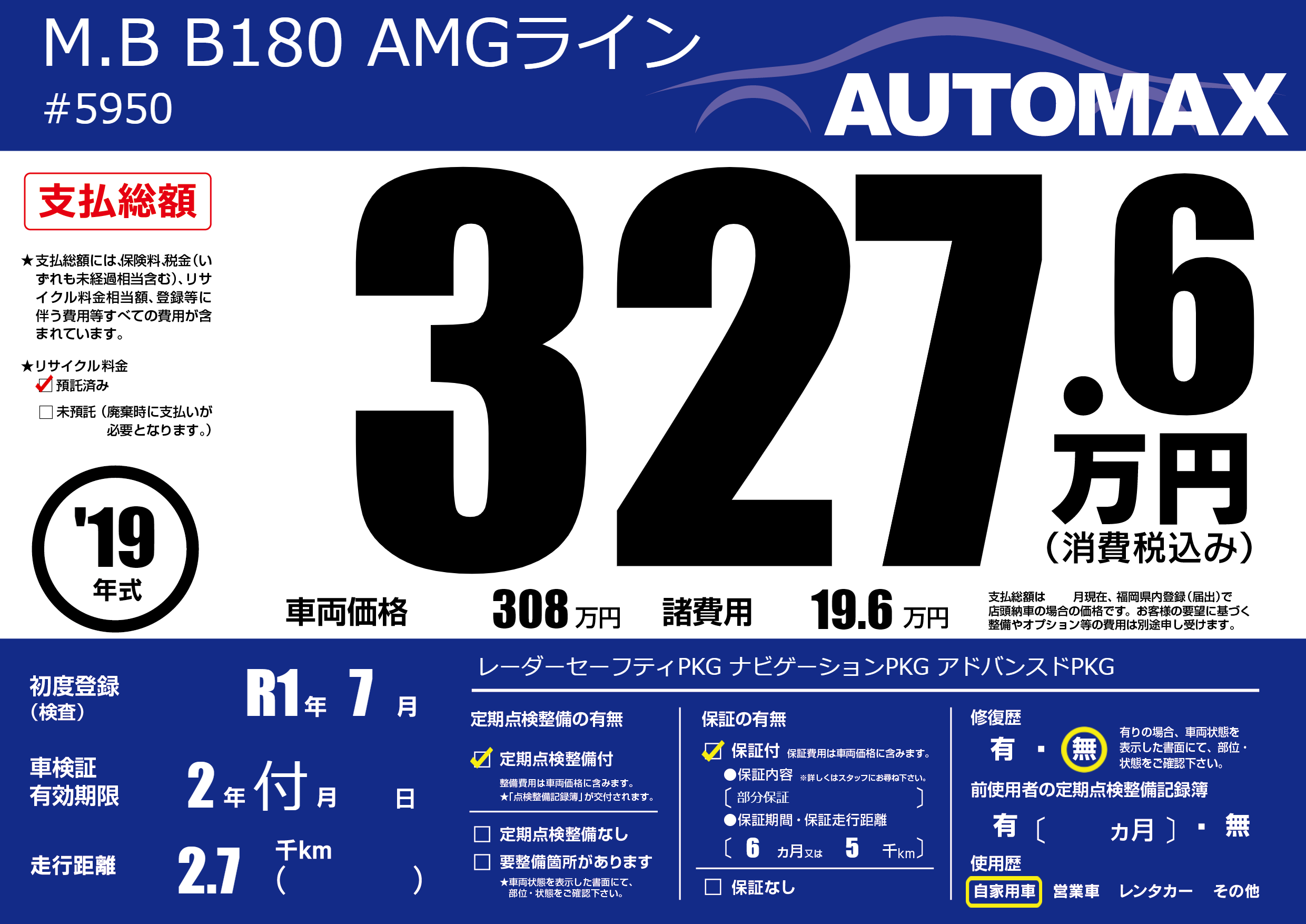 | 車名 | M.B B180 AMGライン | グレード ミッション 排気量 |
