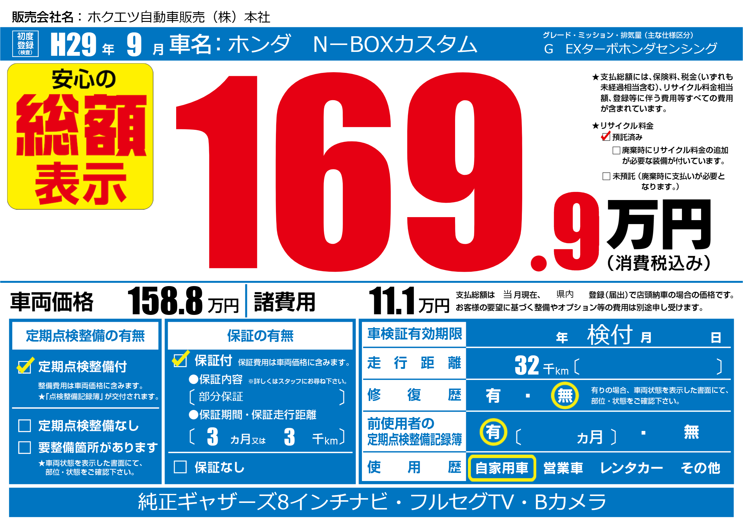 | 走行キロ | 3.2万km | 初年度登録 | H29年9月 |
