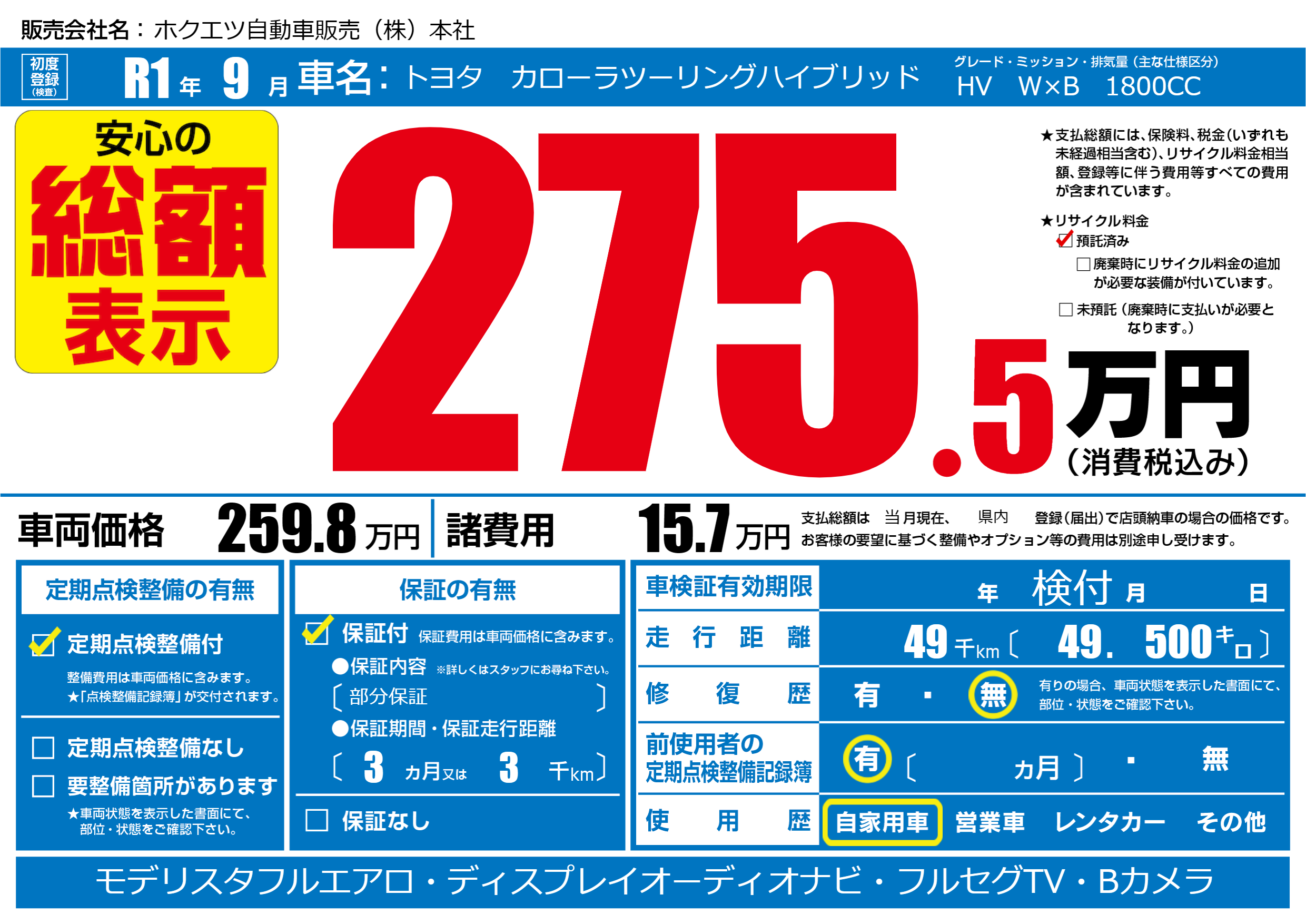 | 定期点検整備 | 定期点検整備あり | ||