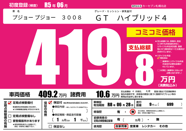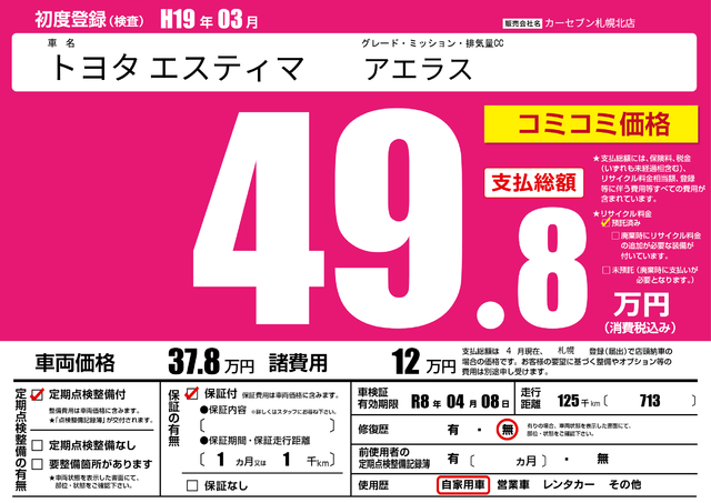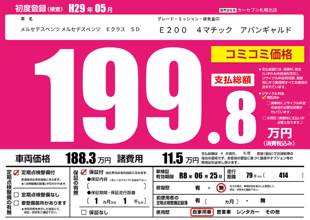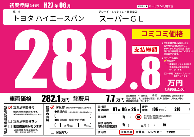 | 走行キロ | 8.6万km | 初年度登録 | H25年09月 |