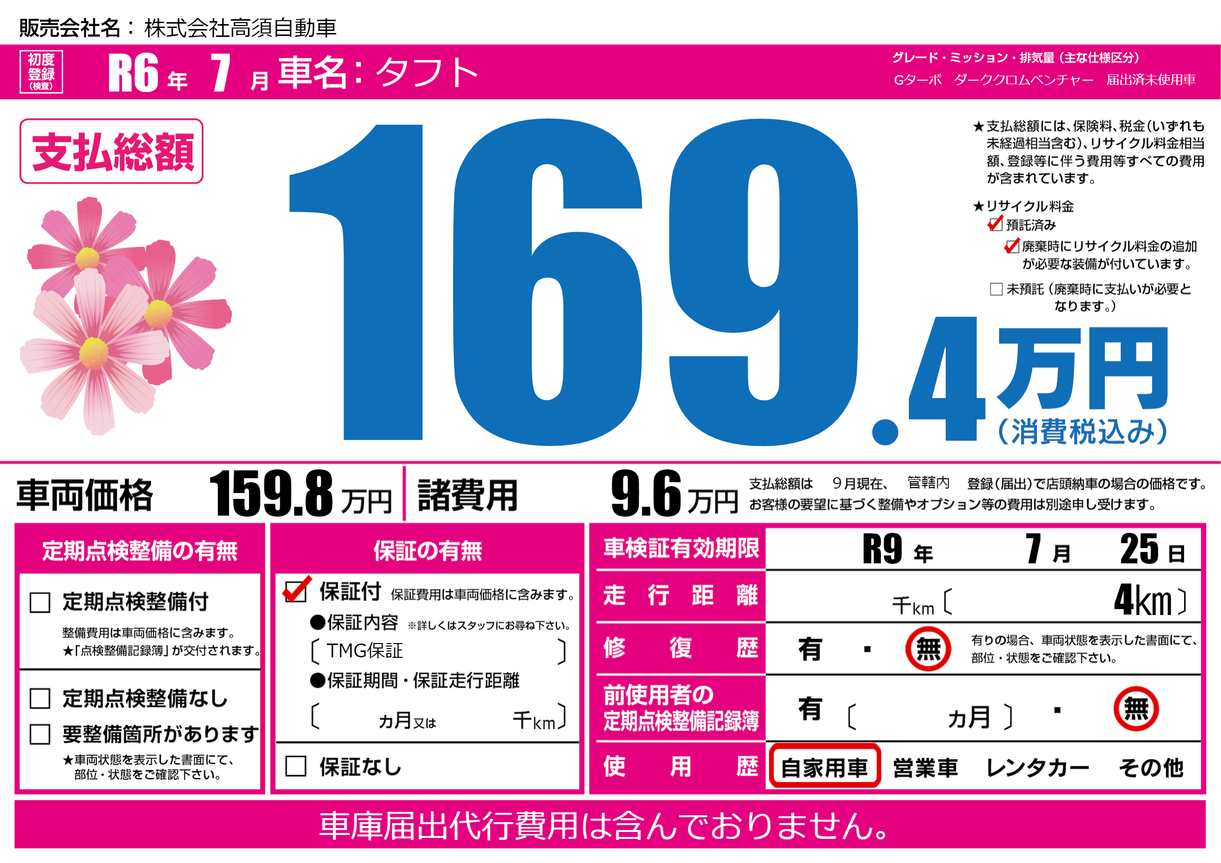 | 走行キロ | - | 初年度登録 | R6年7月 |