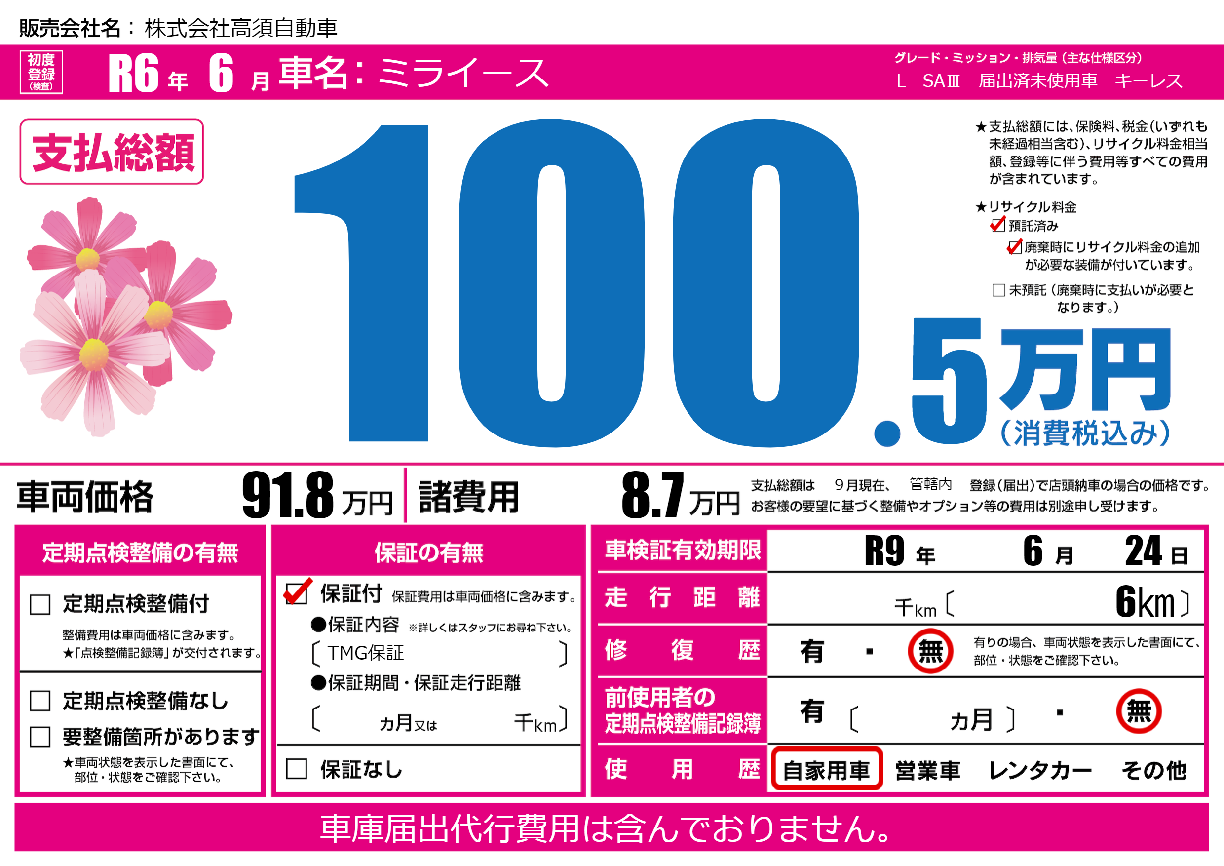 | 走行キロ | - | 初年度登録 | R6年6月 |