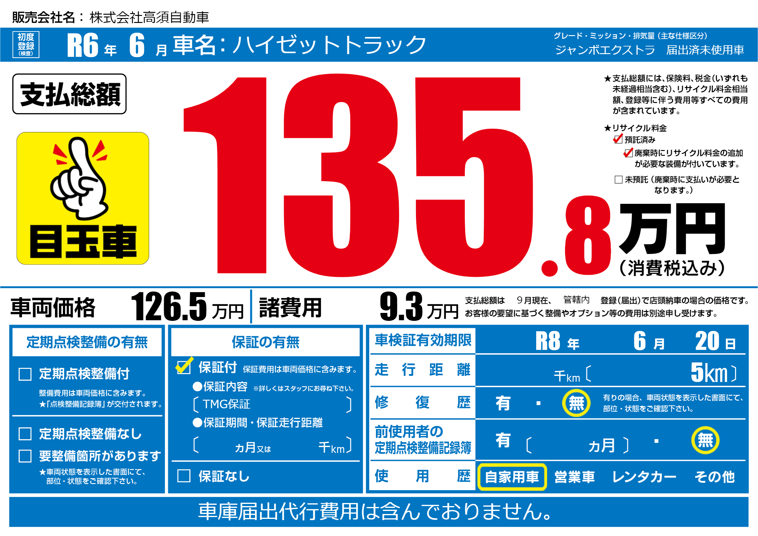 | 走行キロ | - | 初年度登録 | R6年6月 |