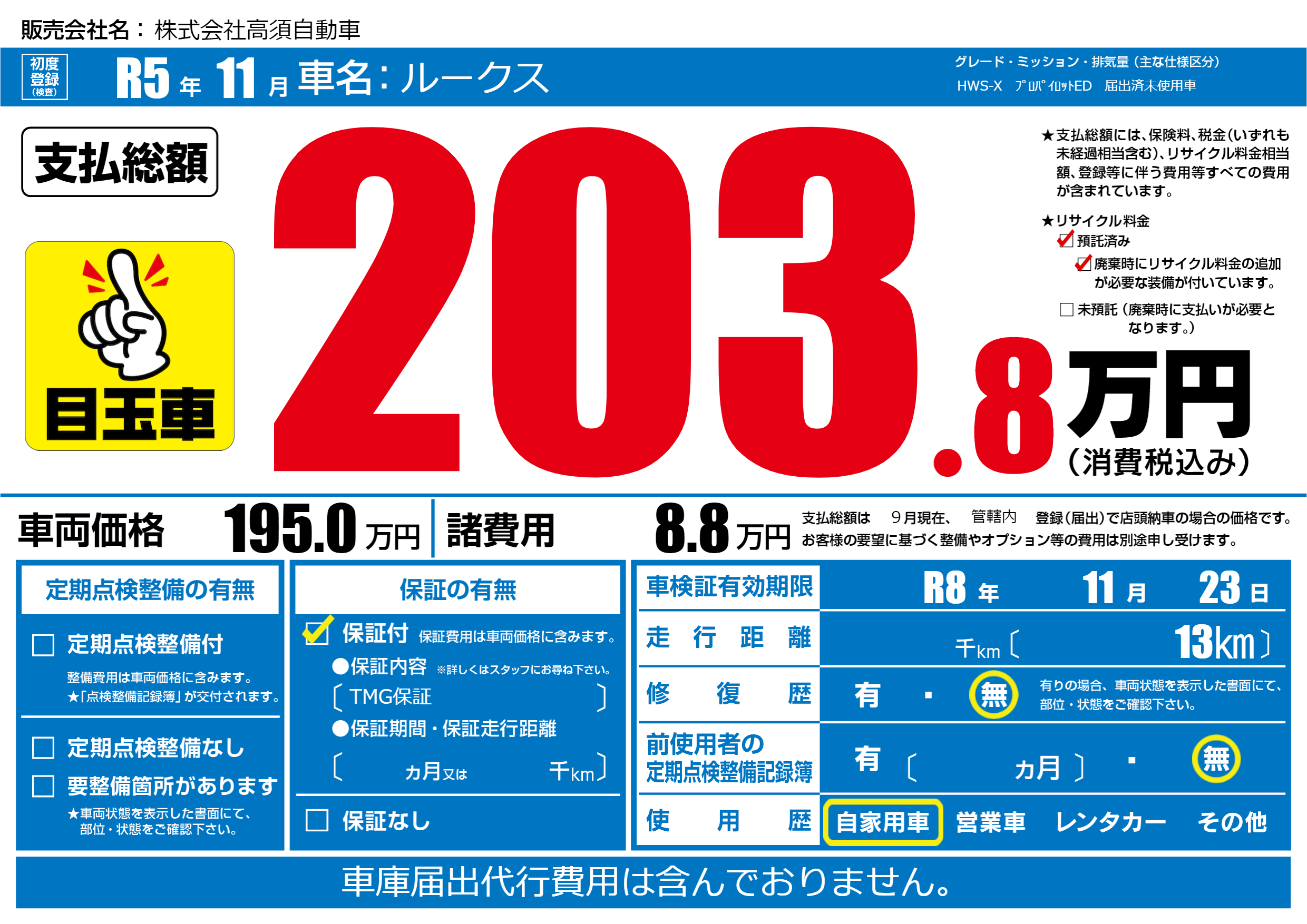 なし | 車検制限 | R8年11月23月 |