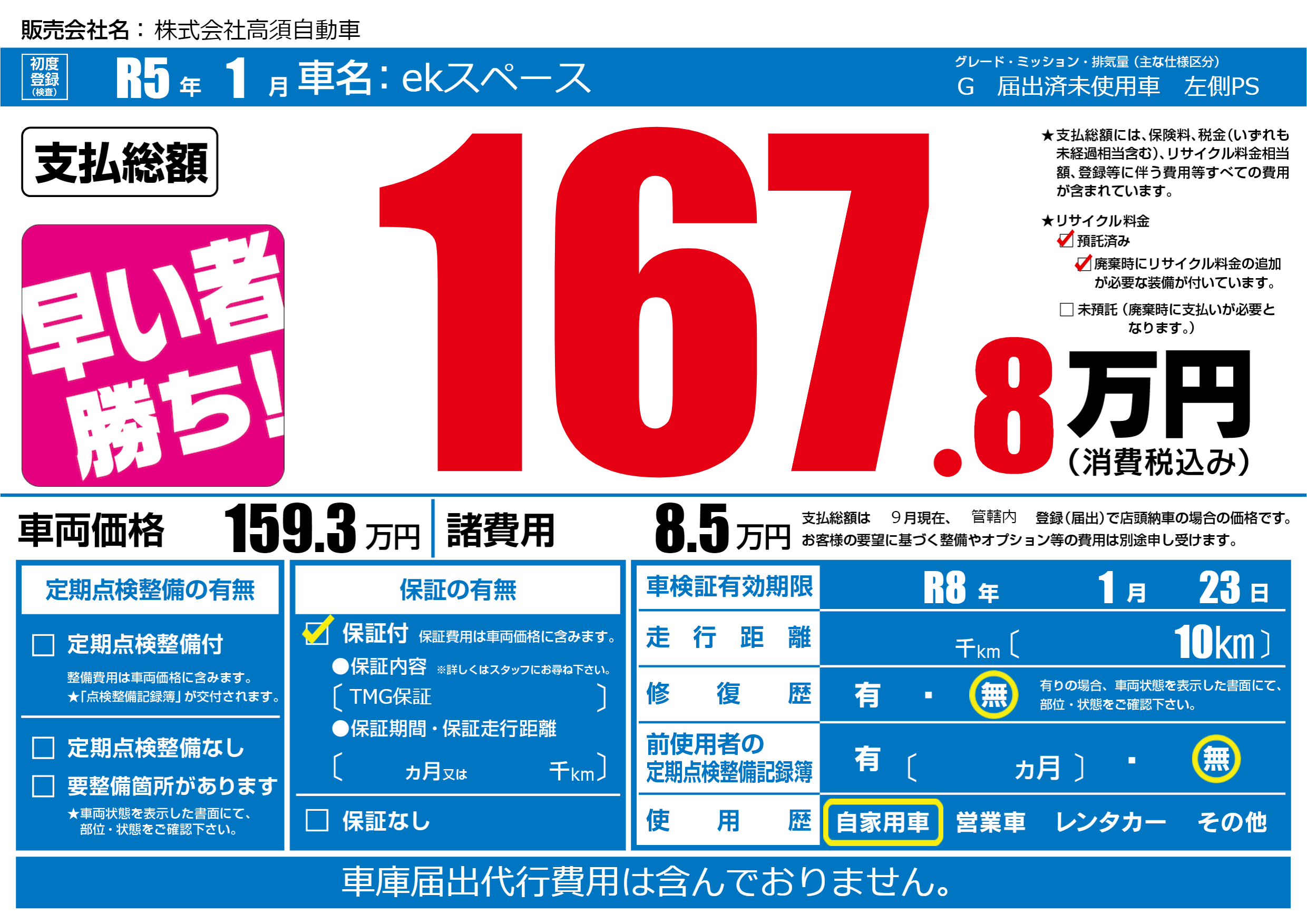 保証付き 保証内容(TMG保証) ---ヶ月または()千kmまで |