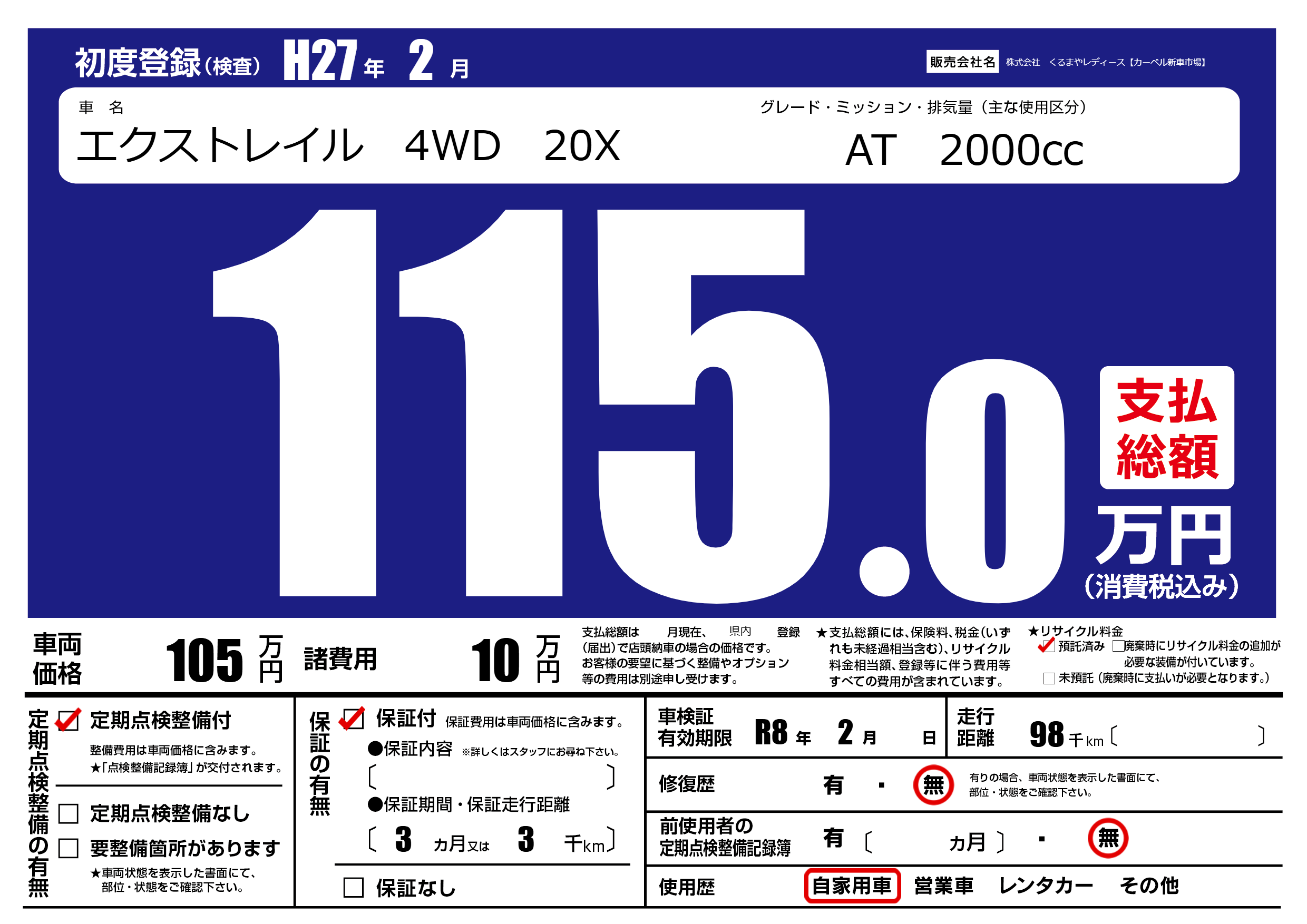 定期点検整備 | 定期点検整備あり |