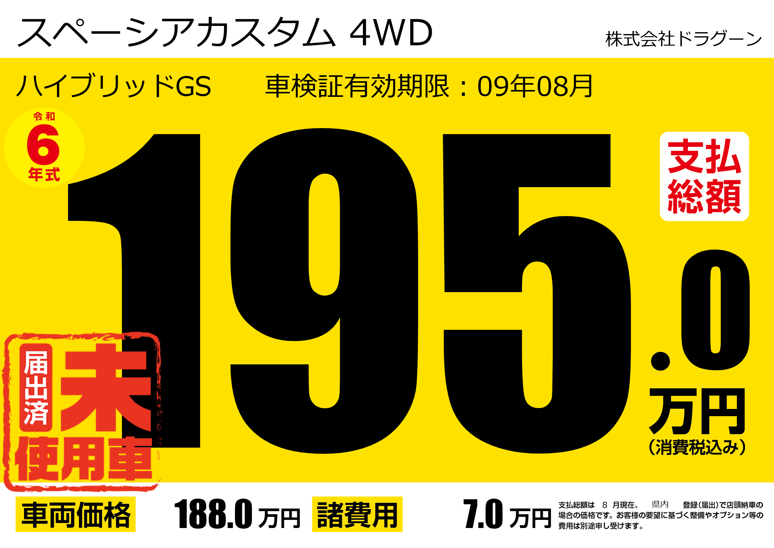 | 車名 | スペーシアカスタム 4WD | グレード ミッション 排気量 |