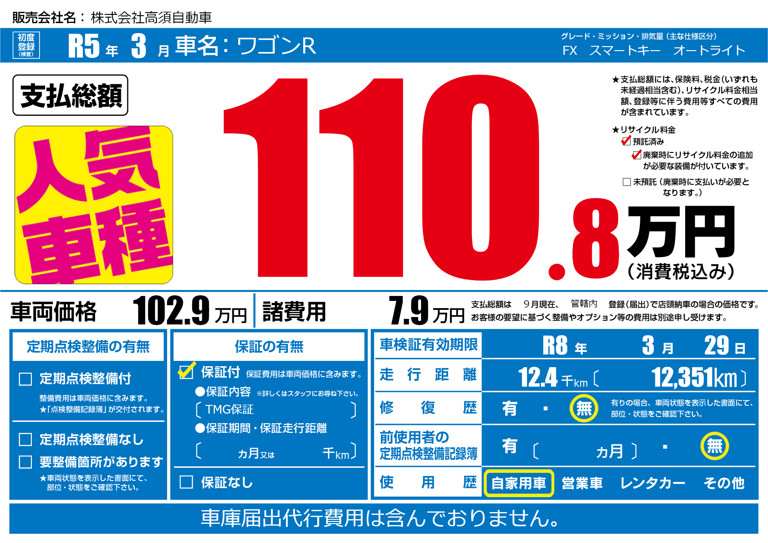 保証付き 保証内容(TMG保証) ---ヶ月または()千kmまで |
