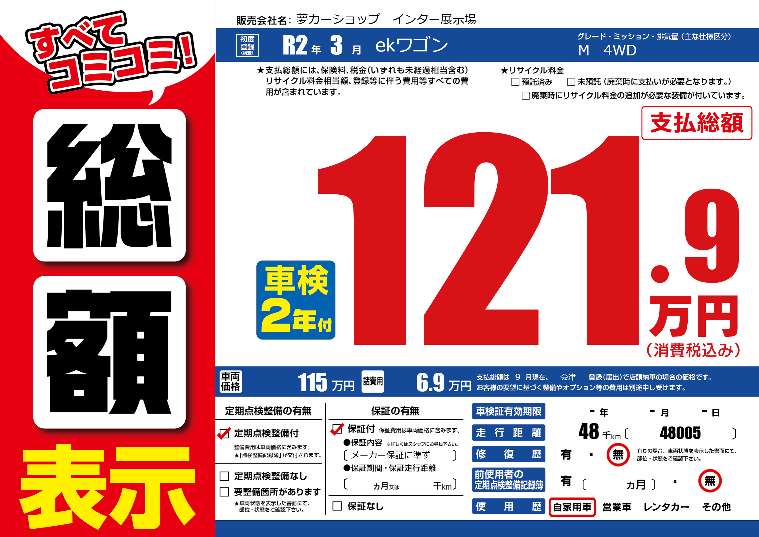 保証付き 保証内容(メーカー保証に準ず) ---ヶ月または()千kmまで |