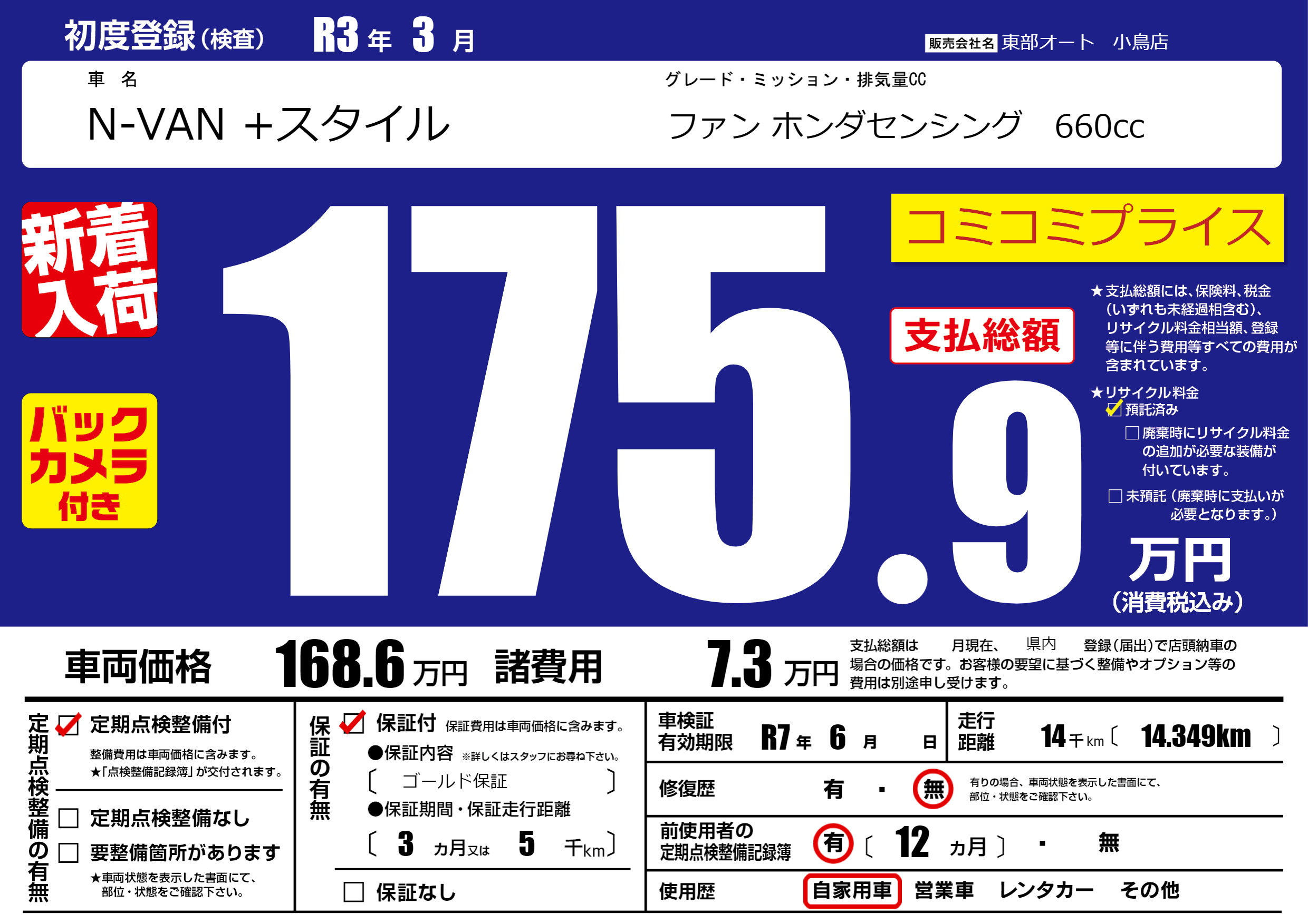 なし | 車検制限 | R7年6月---月 |
