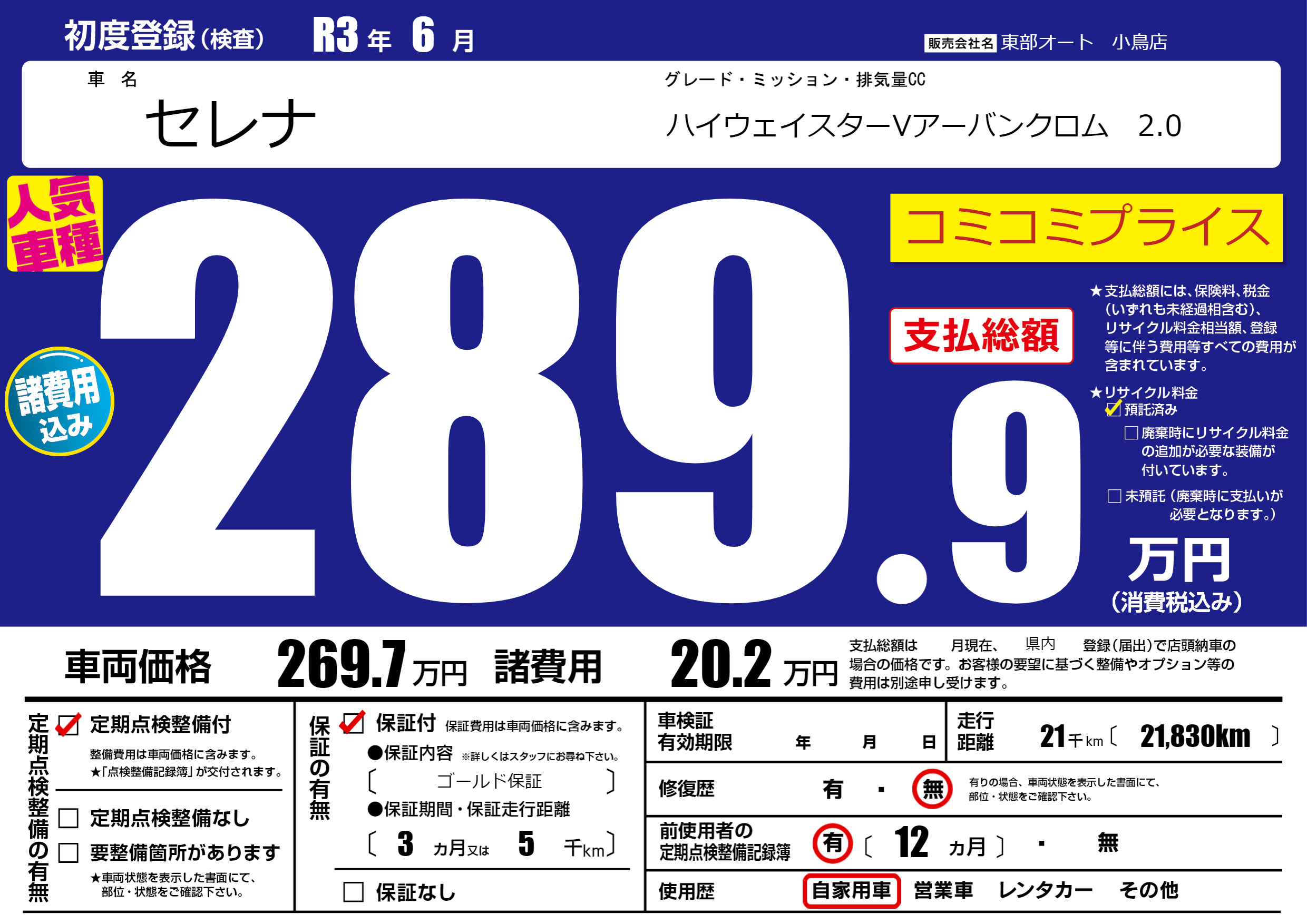 | 走行キロ | 2.1万km | 初年度登録 | R3年6月 |