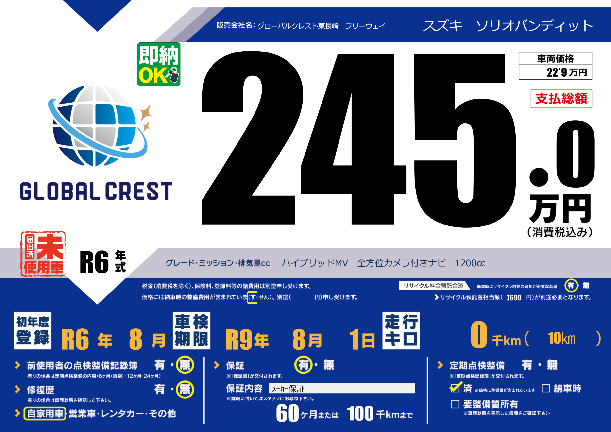 | 走行キロ | - | 初年度登録 | R6年8月 |