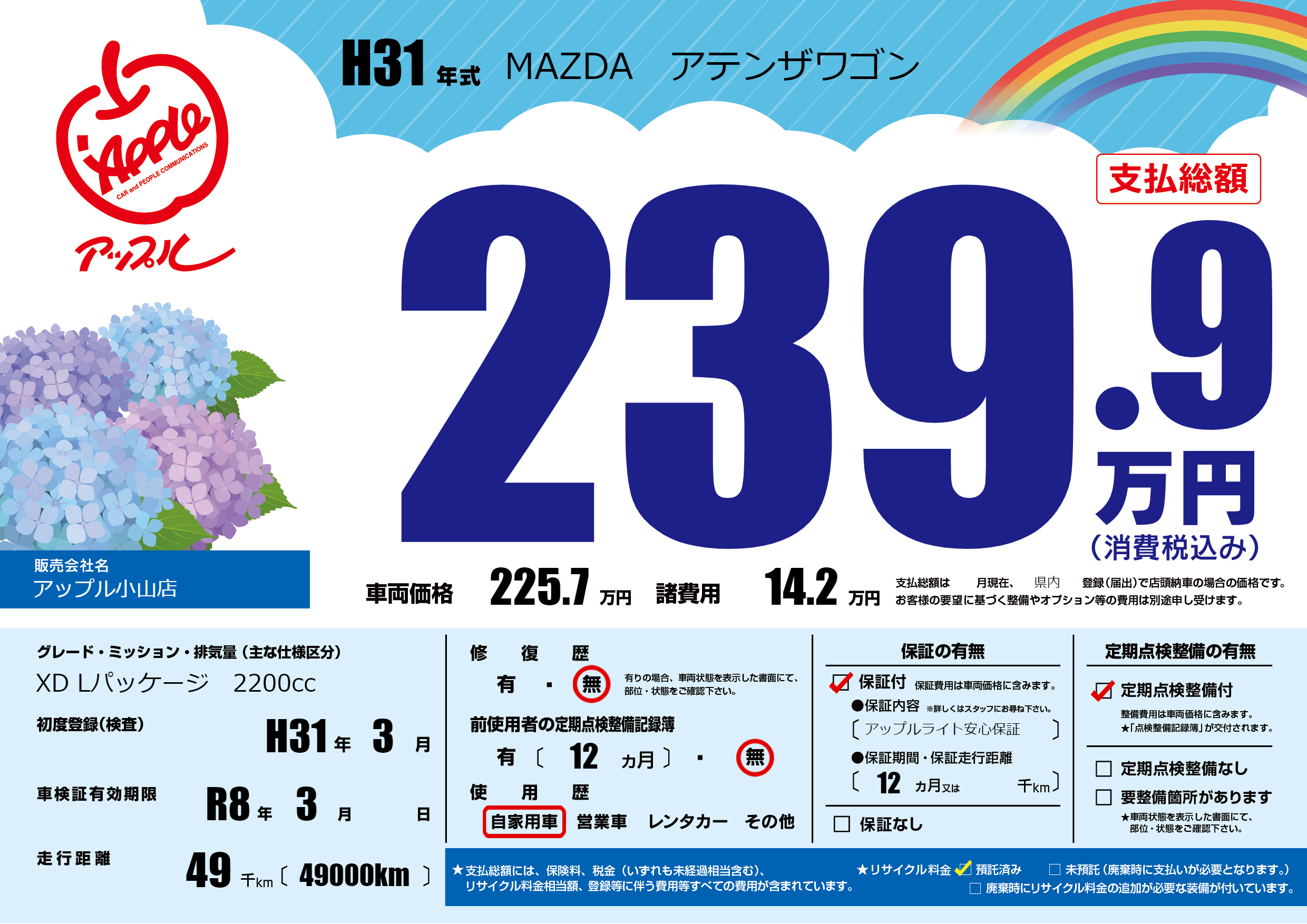 保証付き 保証内容(アップルライト安心保証) 12ヶ月または()千kmまで |