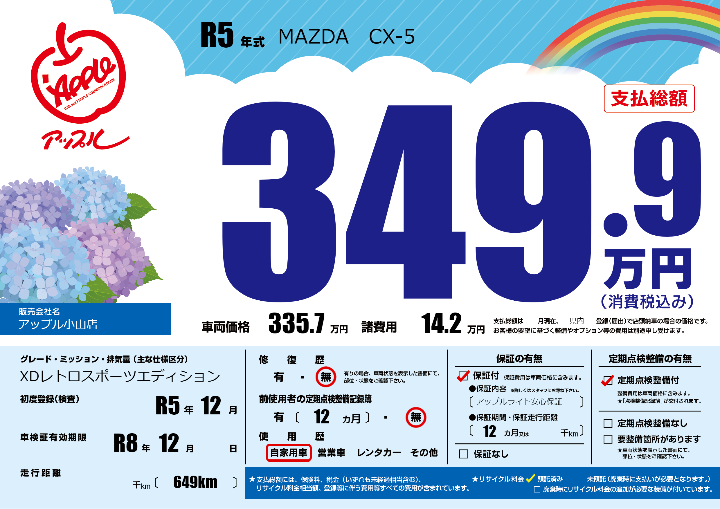 | 走行キロ | - | 初年度登録 | R5年12月 |