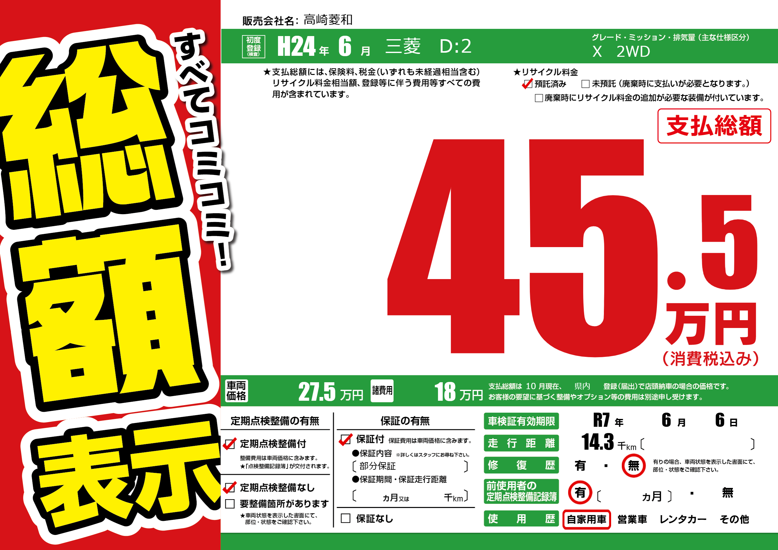 なし | 車検制限 | R7年6月6月 |