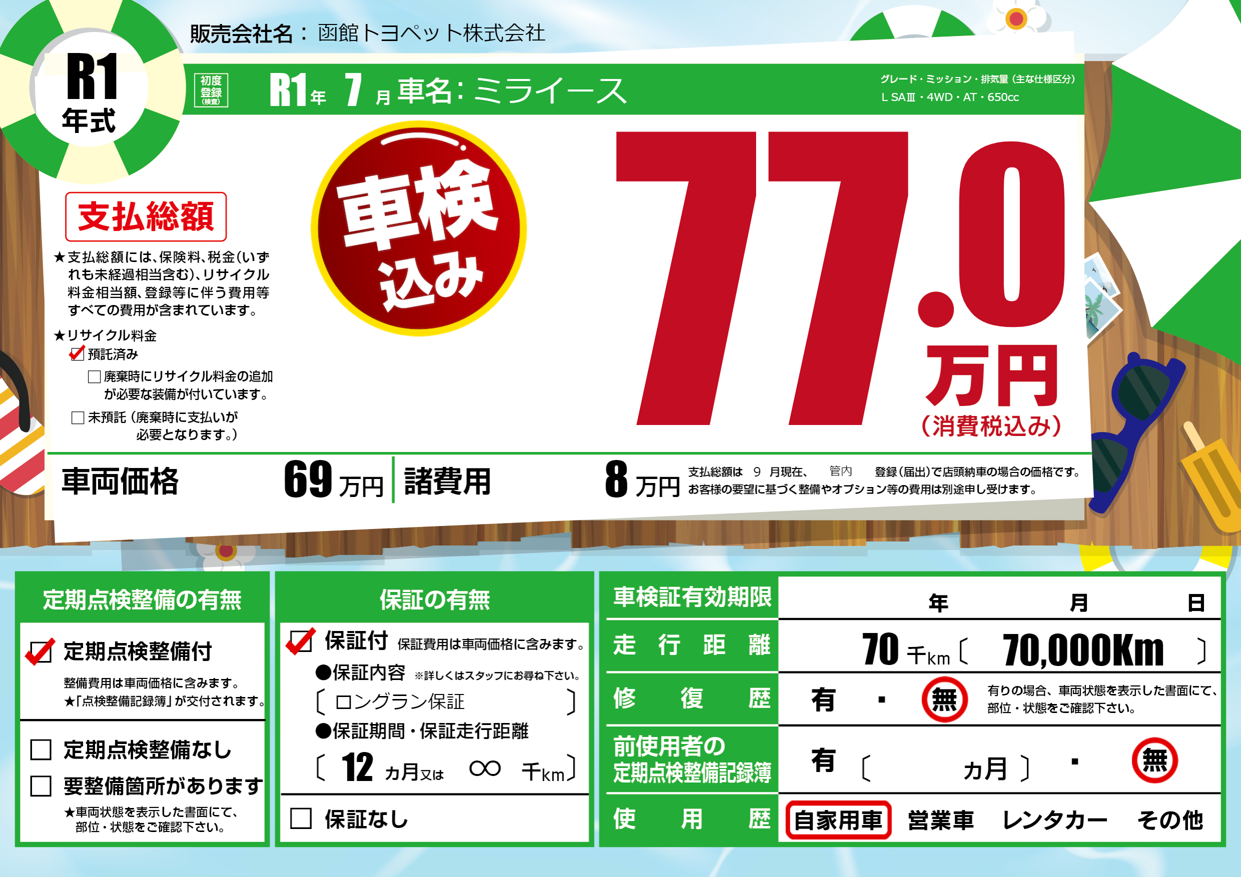 | 走行キロ | 7万km | ||