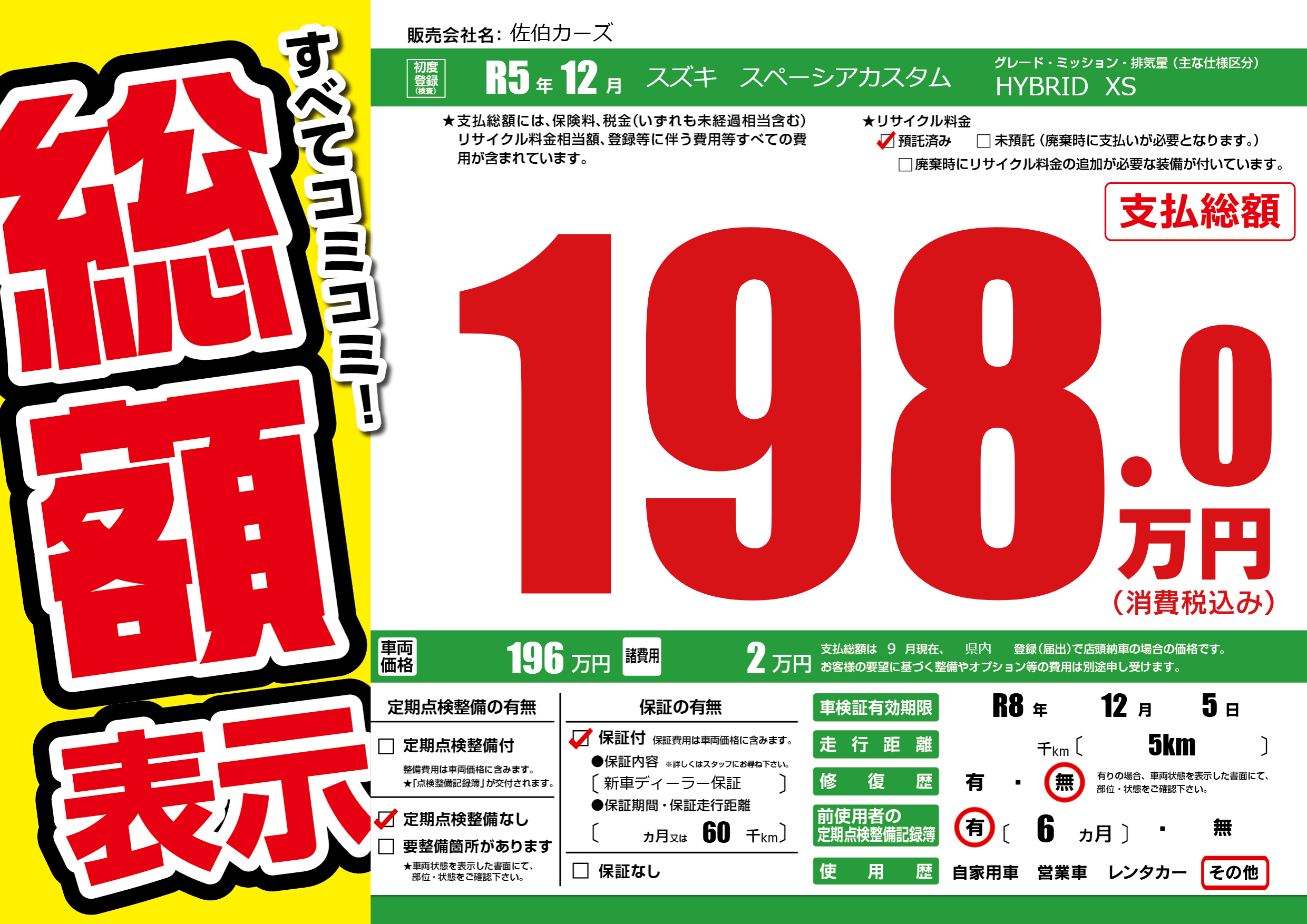 | 走行キロ | - | 初年度登録 | R5年12月 |