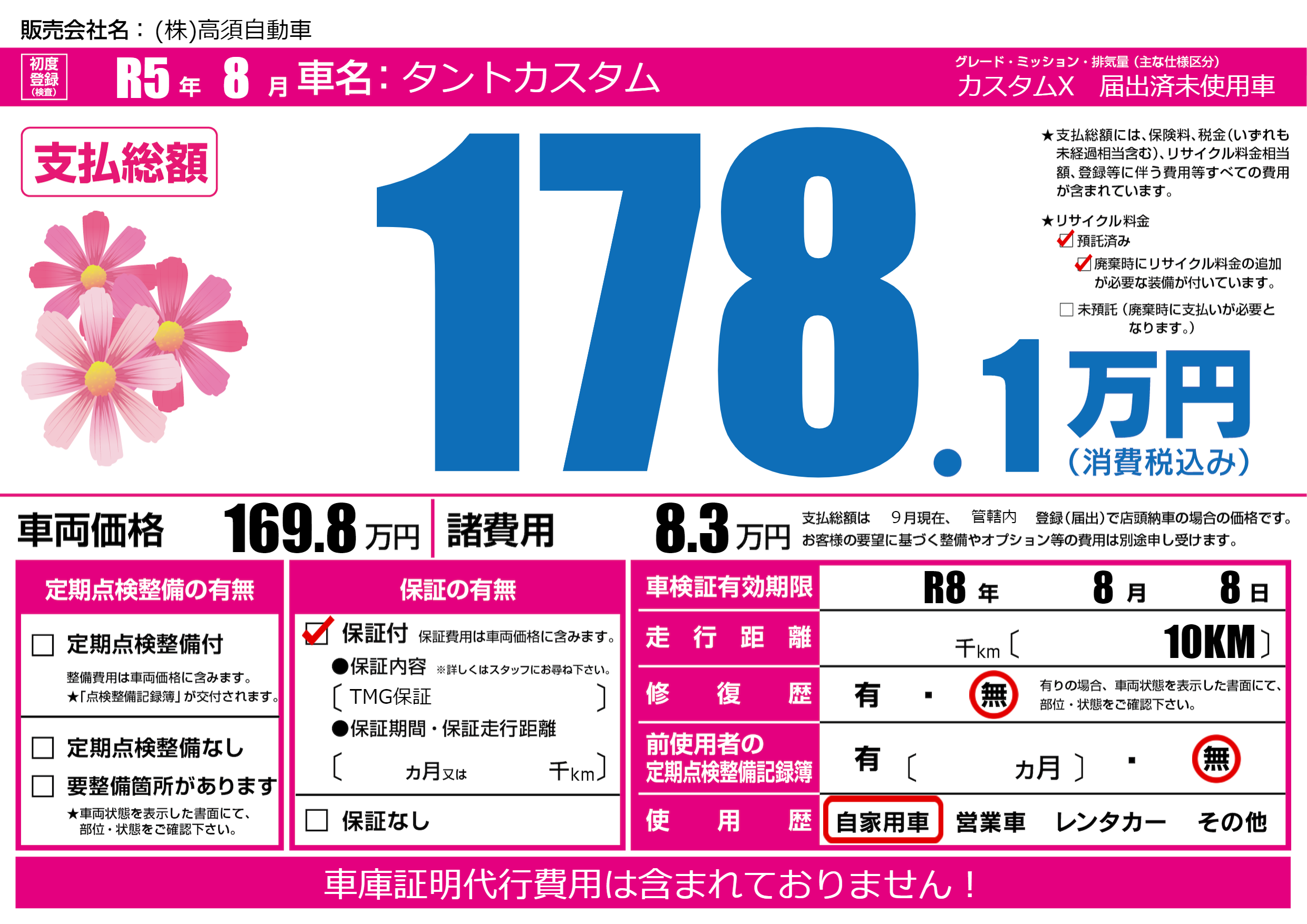| 車名 | タントカスタム | グレード ミッション 排気量 |