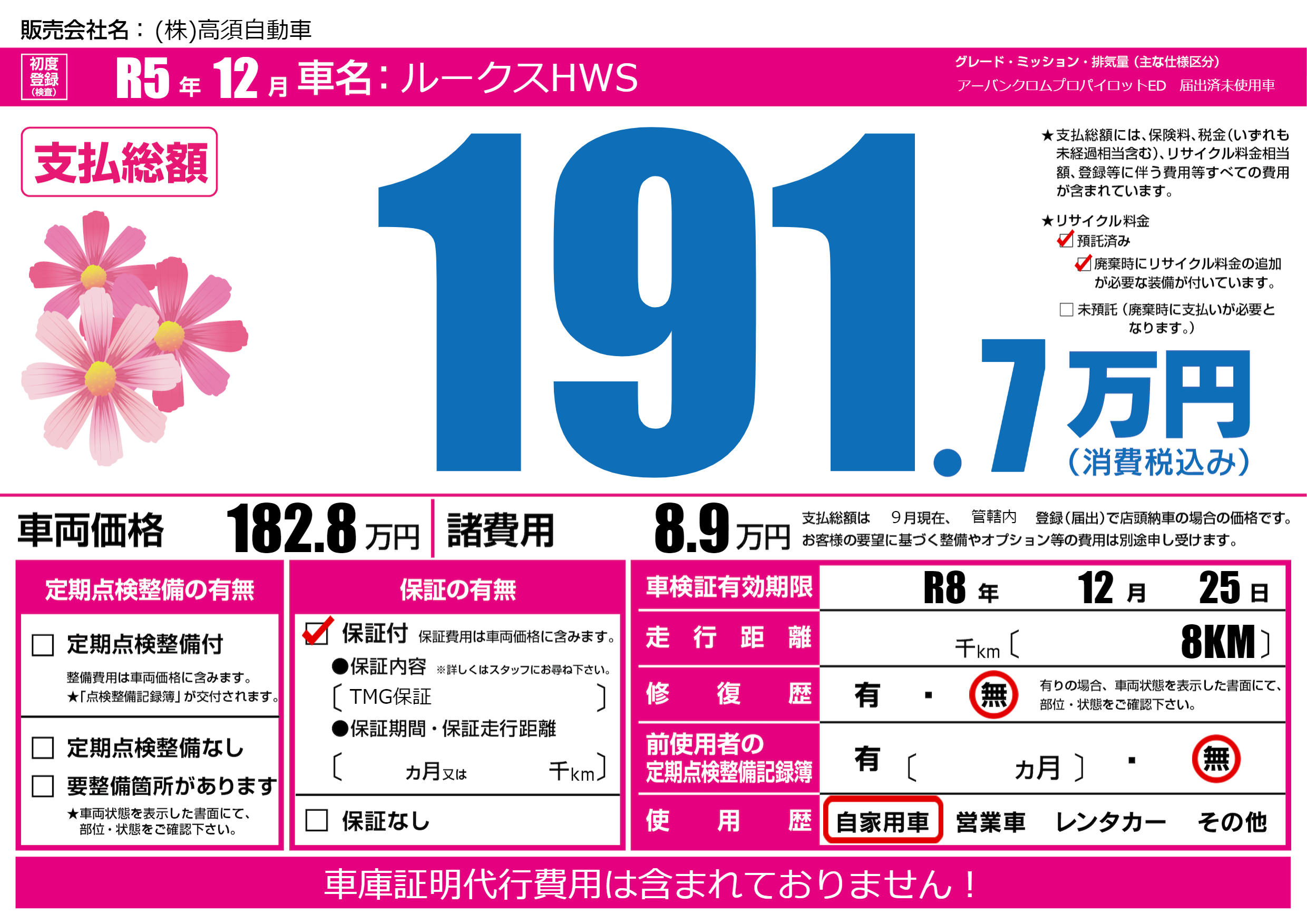 | 走行キロ | - | 初年度登録 | R5年12月 |