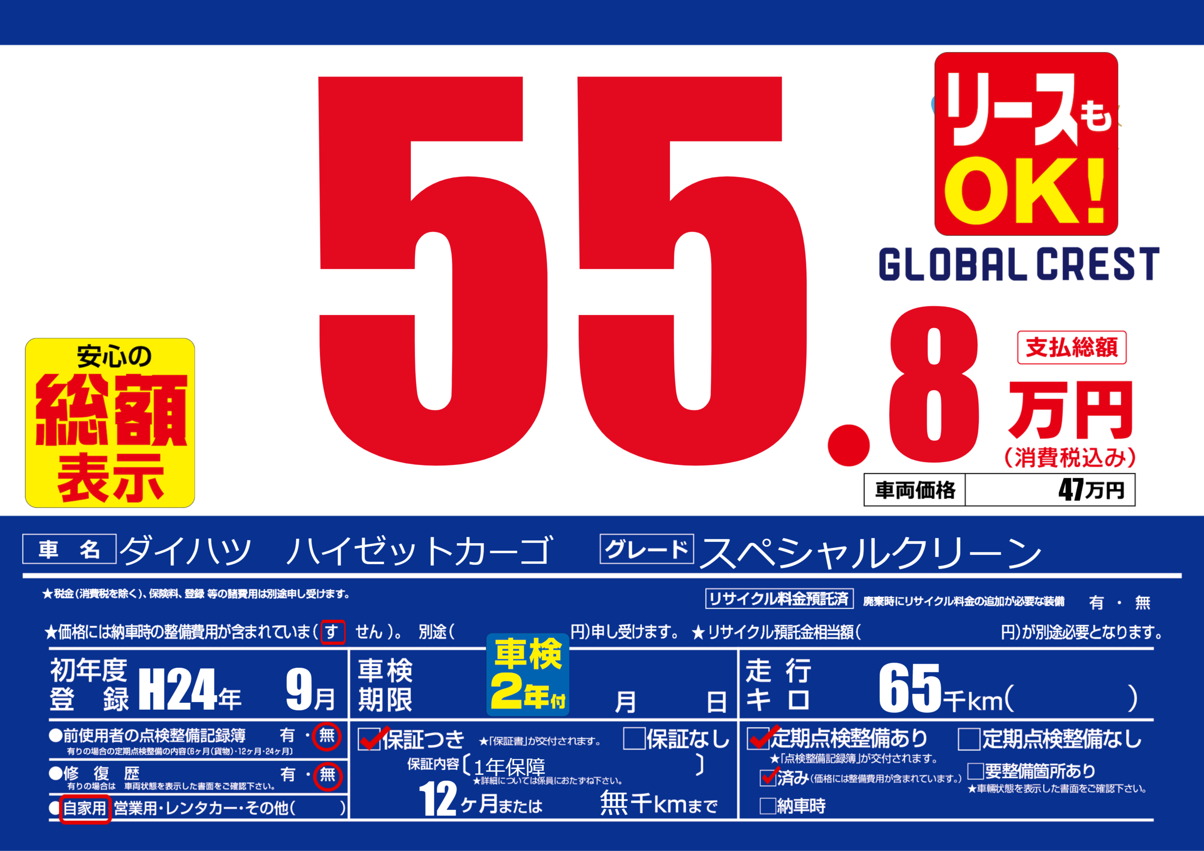 | 定期点検整備 | 定期点検整備あり 定期点検整備済み | ||