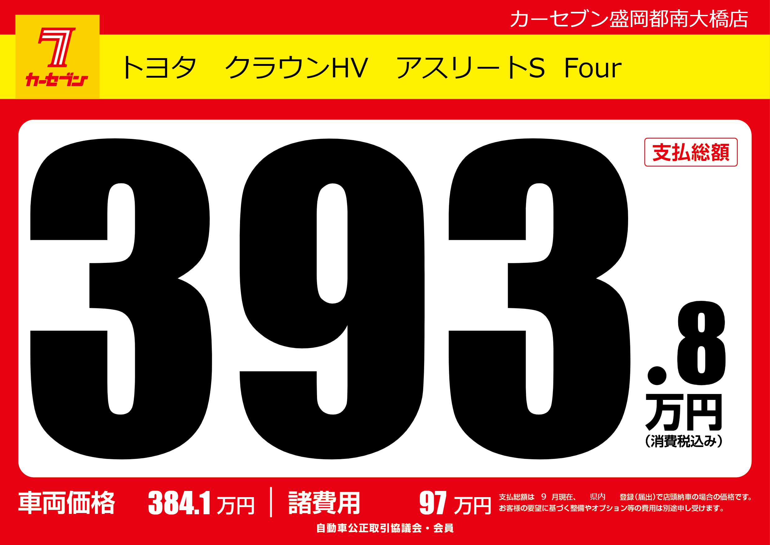 | 車名 | トヨタ クラウンHV アスリートS Four | グレード ミッション 排気量 |