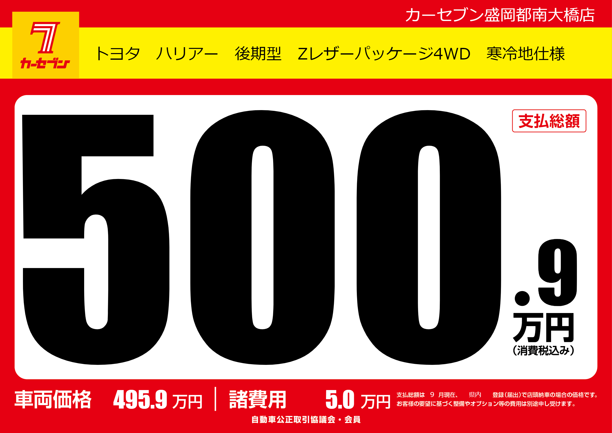 トヨタ ハリアー 後期型 Zレザーパッケージ4WD 寒冷地仕様