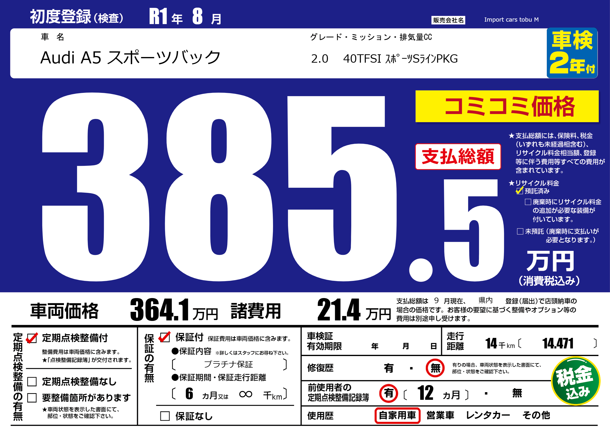 | 定期点検整備 | 定期点検整備あり | ||