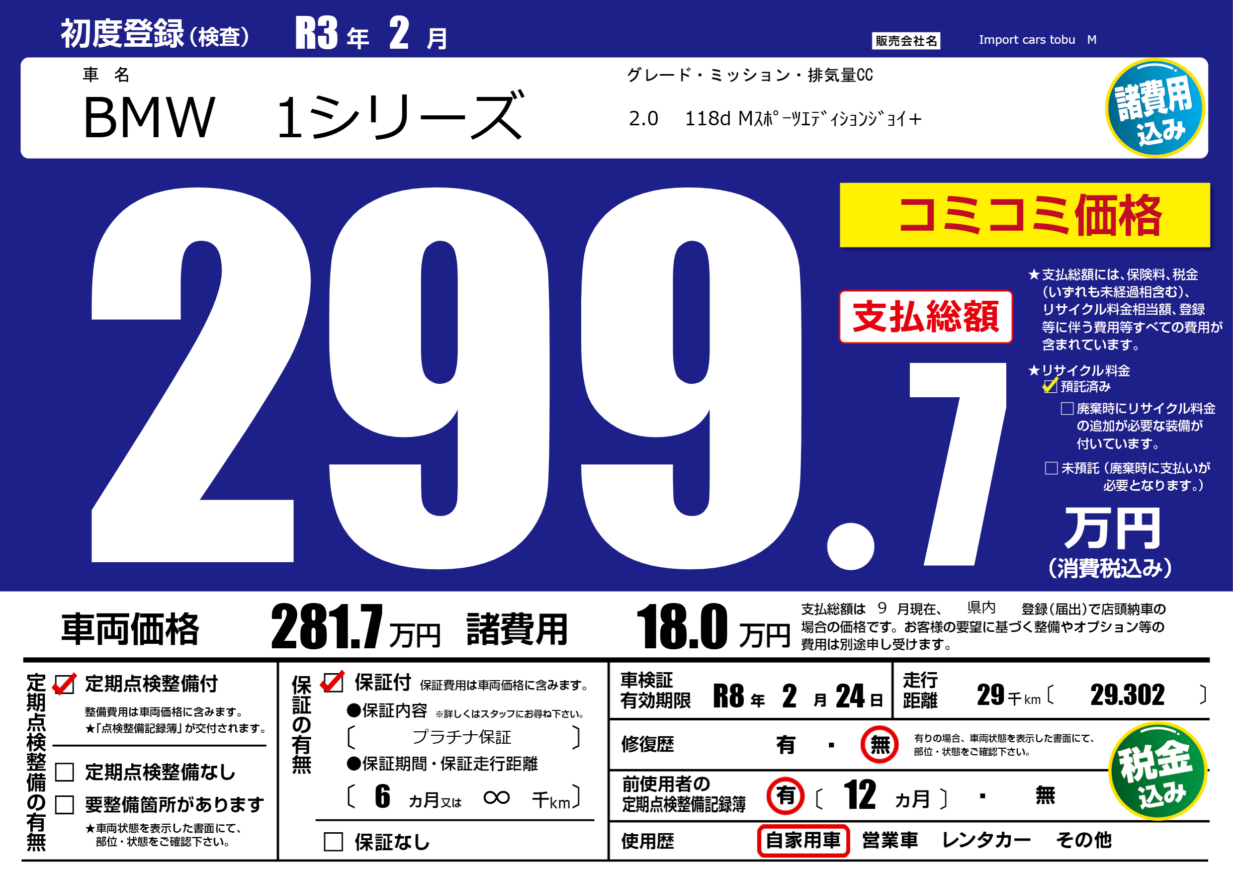 保証付き 保証内容( プラチナ保証) 6ヶ月または(∞)千kmまで |