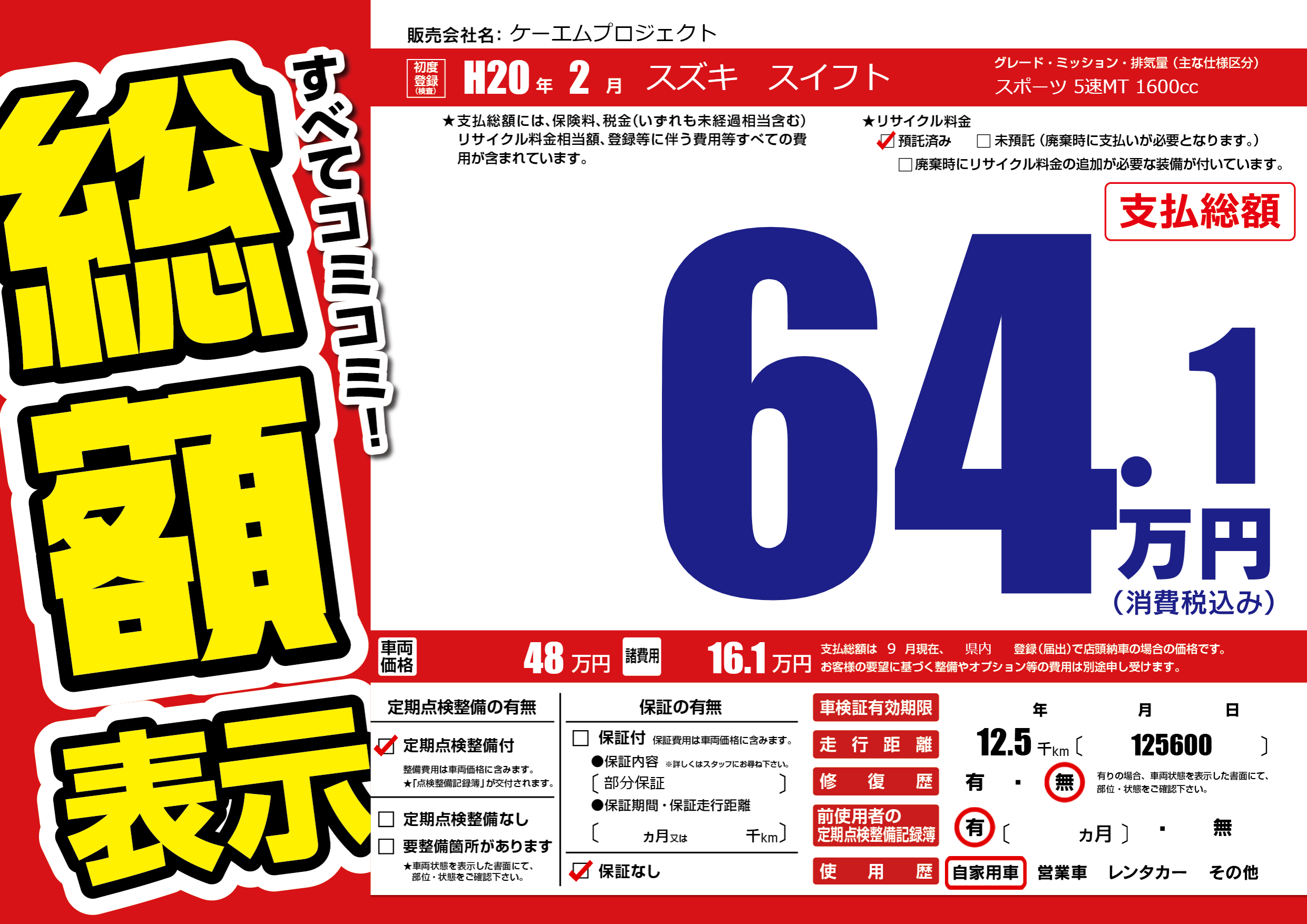 | 車検制限 | - 年 - 月 - 日 | ||